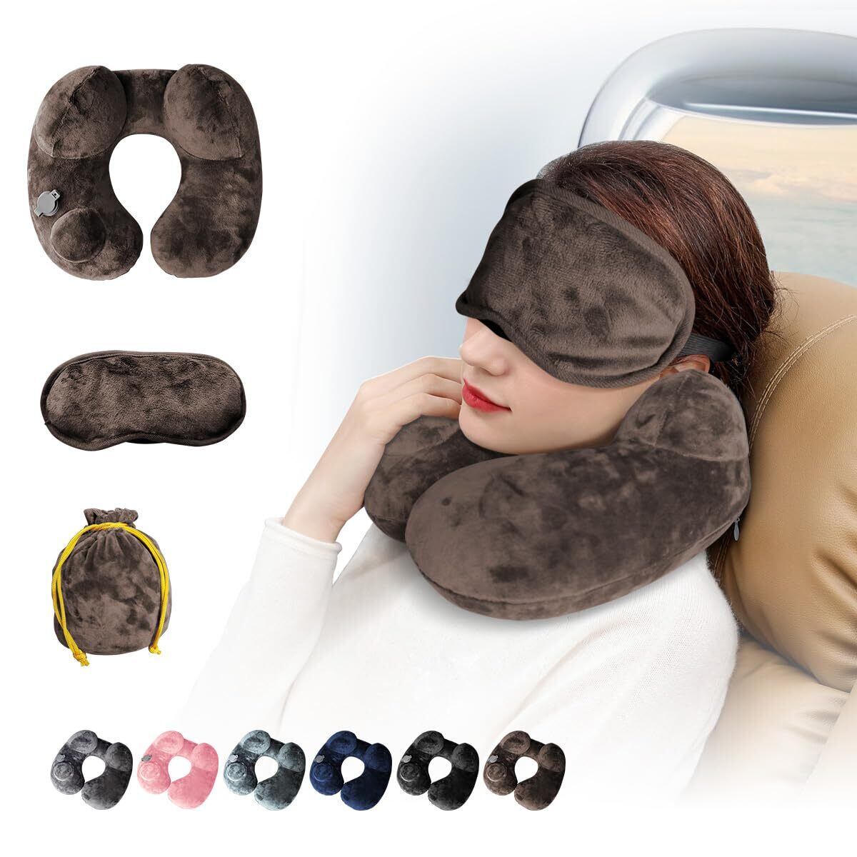 【特価セール】amifun 旅行用首枕 旅行パッド 旅行枕 快適睡眠 手動ポンプ式空気首枕 付属収納ポーチ&アイマスク 新幹線・飛行機シート首枕 洗濯可能 母の日・父の日ギフト ブラウン