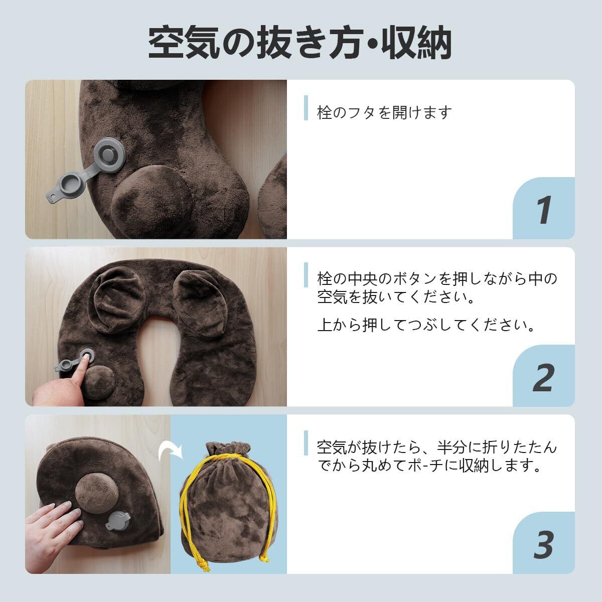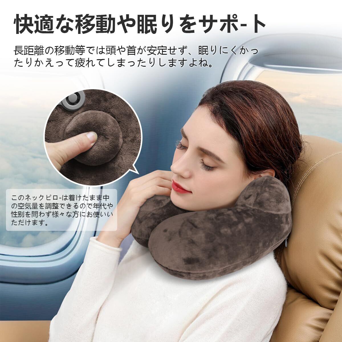 旅行時の首の疲れを解消: 手動ポンプで空気を注入することで、首をしっかりと支えてくれる頚椎サポート枕です。