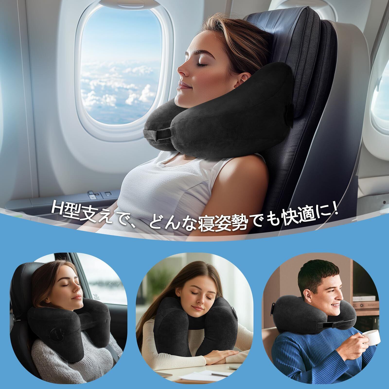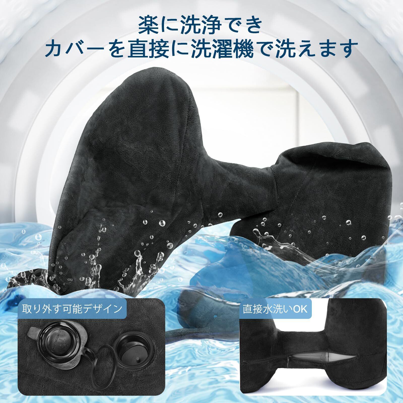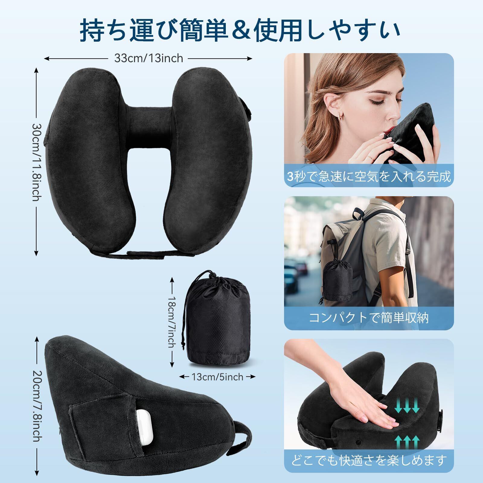 【数量限定】Sunany ネックピロー 超軽量 214g H型ネックピロー 人間工学デザイン 折り畳み可能 水洗い可 飛行機 快適グッズ 旅行 便利グッズ トラベルピロー 長距離 旅行用枕 車 電車 オフィス 昼寝 新幹線 エアーピロー 携帯枕 洗濯機対応 収納袋付き(ブラック)
