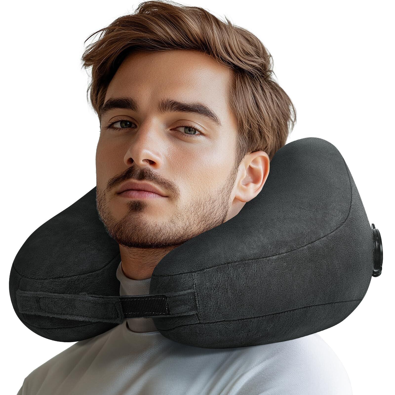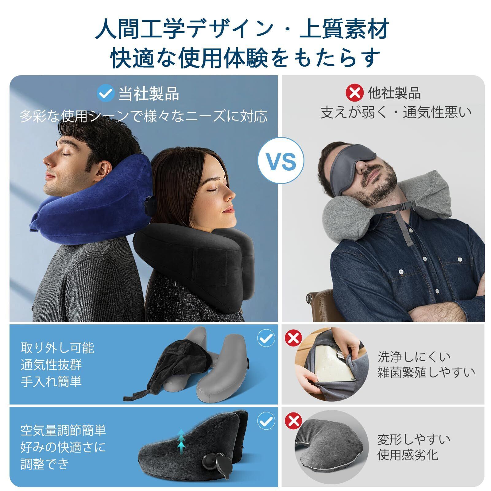 【急速設置・収納】取得バルブで空気漏れゼロ、3秒で設置・収納完成できます、(80-90%膨らみが最適)いつでもどこでも雲のような柔らかいネックピローを楽しめます!