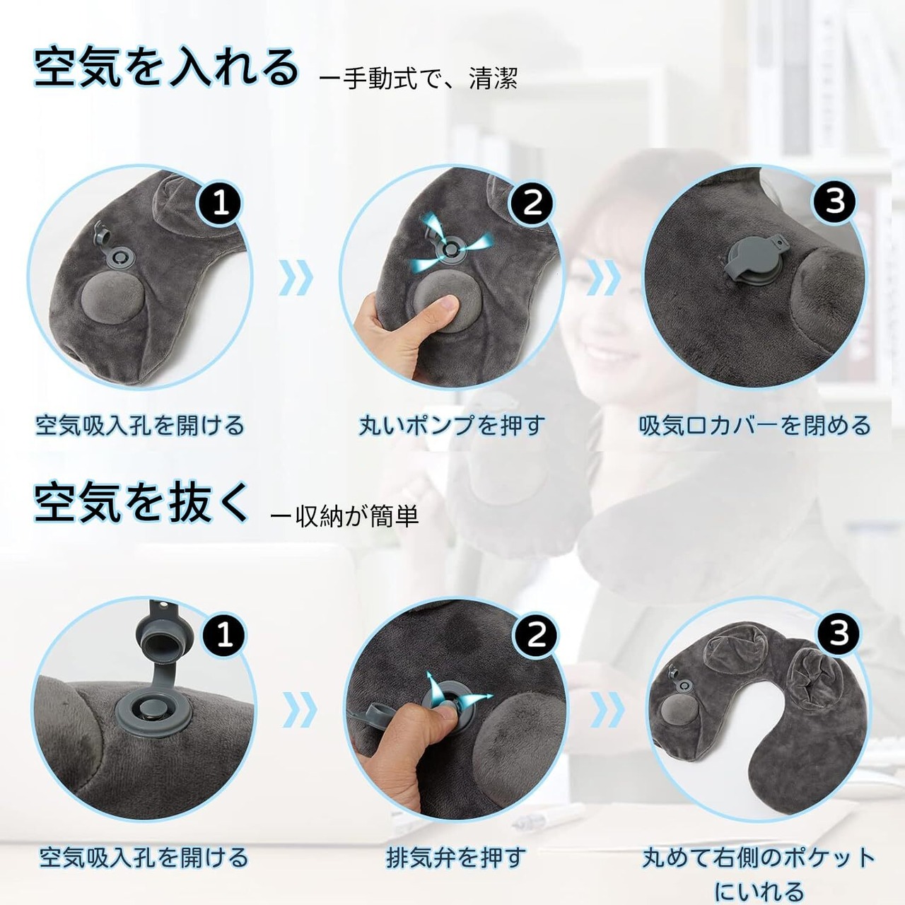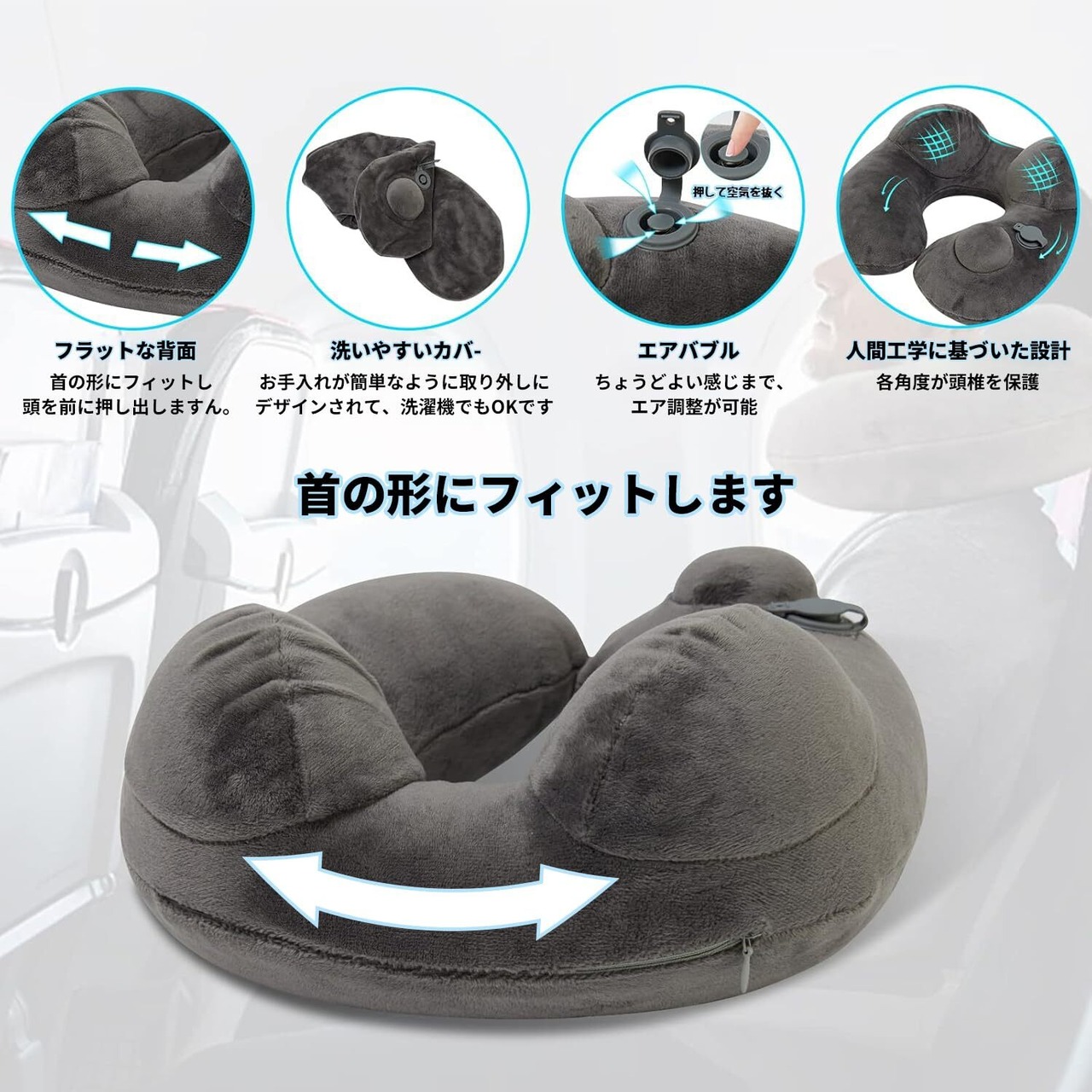 whdpets ネックピロー 首枕 旅行用 空気枕 ネックピロー 飛行機 コンパクト エアーピロー 飛行機 携帯枕 旅行便利グッズ 持ち運び便利 オフィスグッズ トラベル 収納バッグ付き U型 グレー (エアー, 1)
