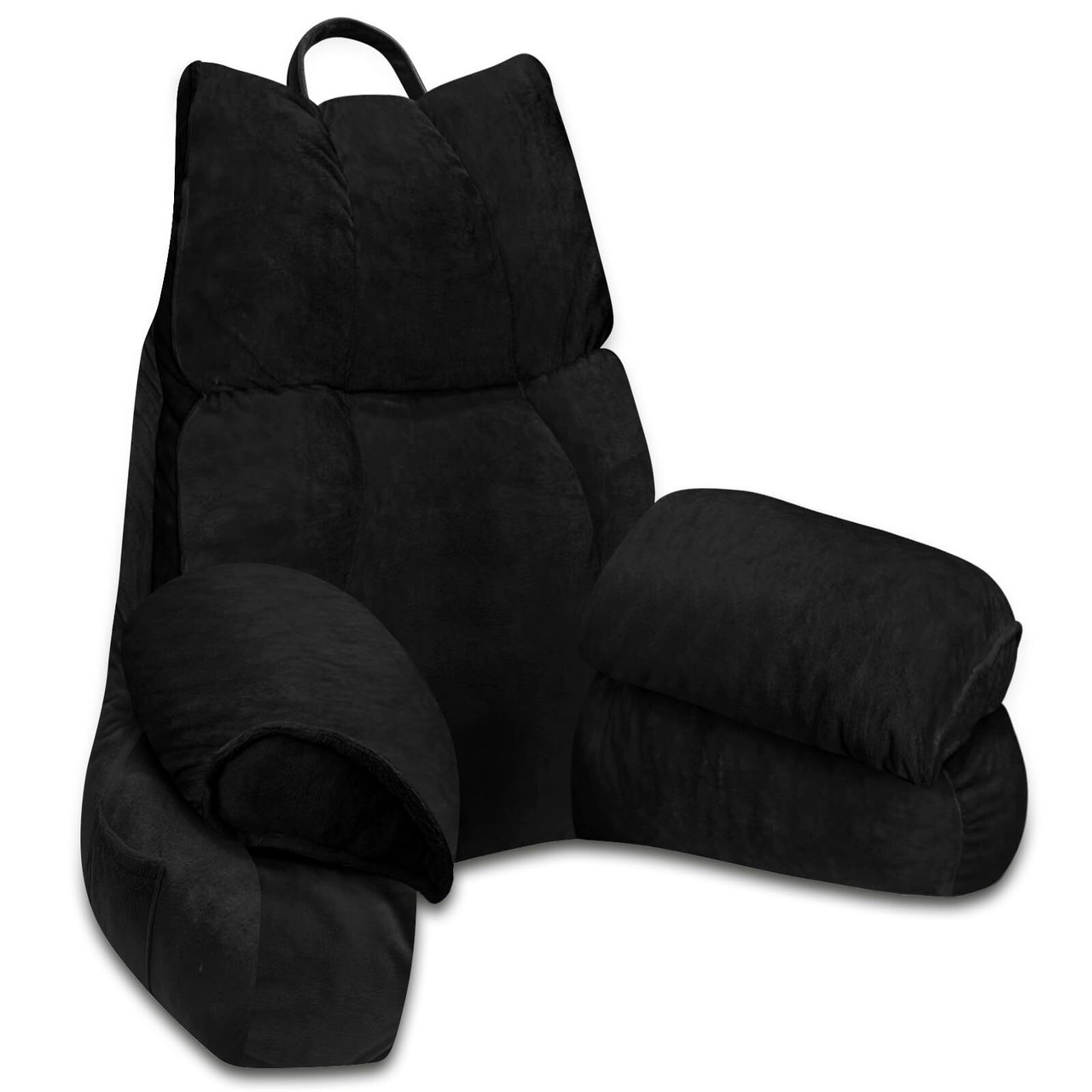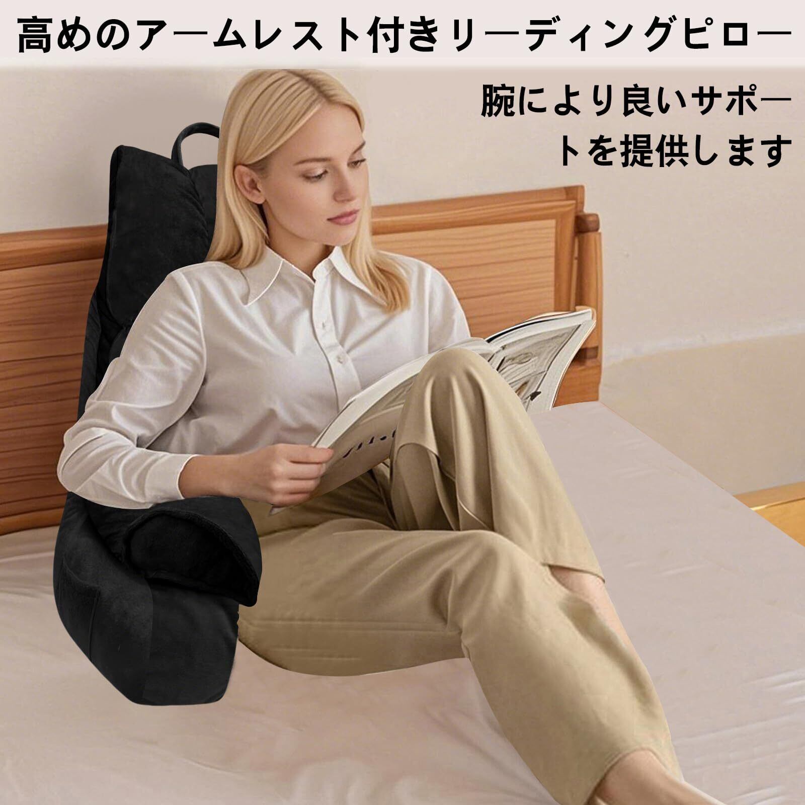 背もたれ クッション,アームレスト付き読書枕 大人向けサポートピロー,ベッド&ソファ用 テレビ枕・ゲームやリラックスに最適なリーディングクッション(くろ,67*30cm)
