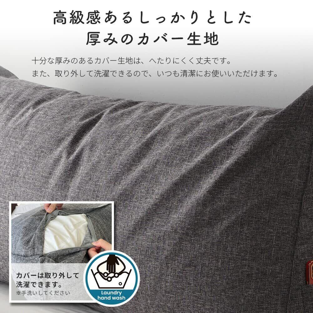 高級感あるしっかりとした厚みのカバー生地。洗練された印象のグレーは協調性も高く、どんなインテリアテイストにも合わせやすい万能カラーです。和洋問わず、どんなお部屋にもしっくりとなじみます。十分な厚みのあるカバー生地は、へたりにくく丈夫です。また、取り外して洗濯できるので、いつも清潔にお使いいただけます。