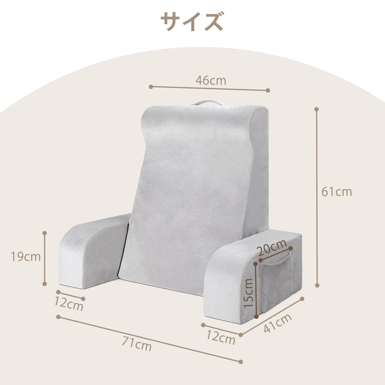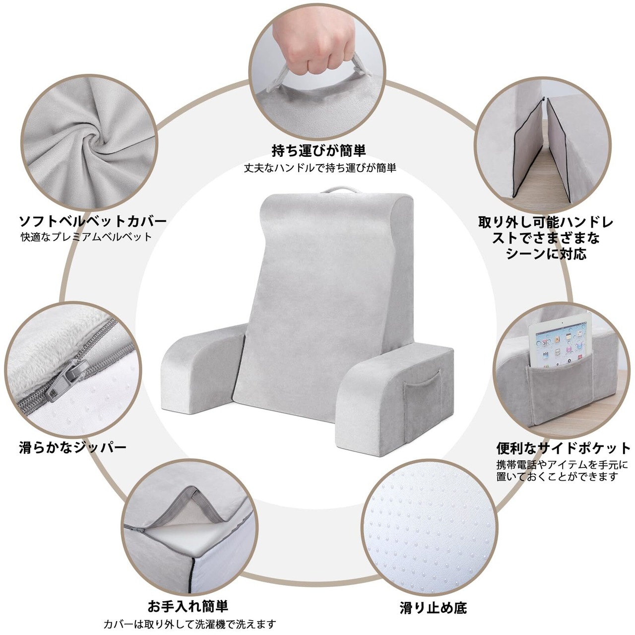 Azamia クッション 背もたれ 高反発 読書用クッション せもたれクッション 軽量ベッドの上 読書枕 肘付きレストクッション テレビ枕 腰枕 背中クッション ソファ用枕 持ち運び便利 カバー洗える ソファー用 靠枕 (ダークグレー)