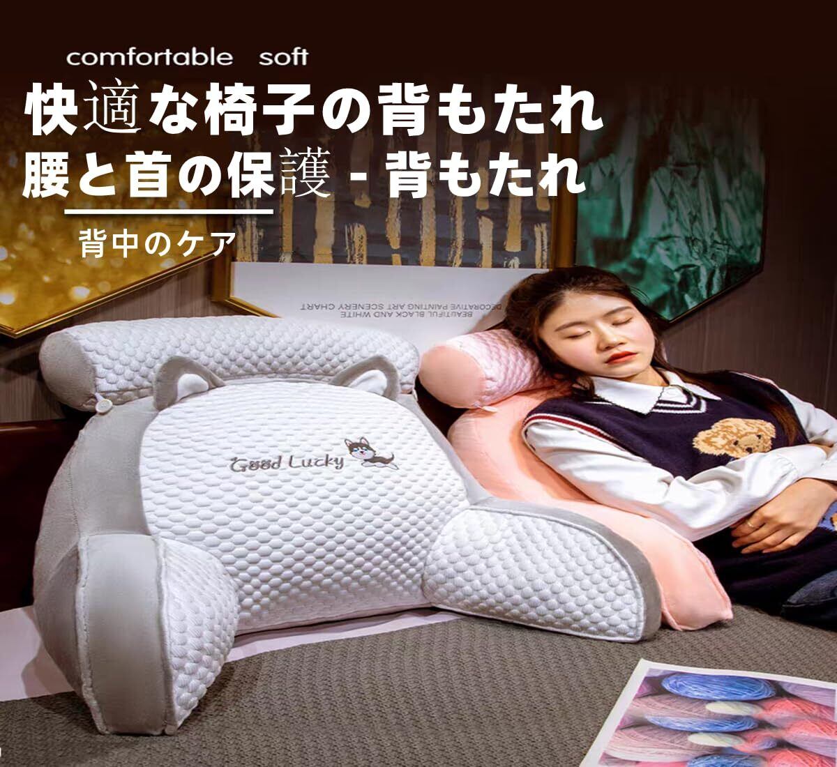 【快適でサポート力】この背もたれ クッション ベッドは巧妙なデザインを使用しており、背中と腰を非常に快適な位置に保つために科学的に傾斜しています。 この腰枕を使用すると、ゲームをプレイしたり、本を読んだりするときに高の座位を維持し、体を完全にリラックスさせることができます。