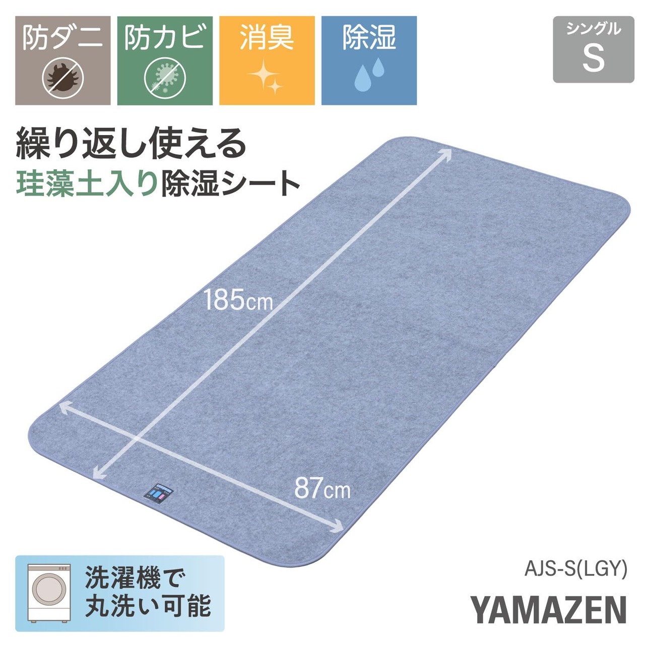 山善(YAMAZEN) 除湿シート シングル 珪藻土入り 洗える 防ダニ 防カビ 消臭 吸湿センサー付き 敷パッド 寝具用 除湿マット 湿気取り 繰り返し使える 梅雨 マットレス ベッド 布団 寝室 ライトグレー AJS-S(LGY)