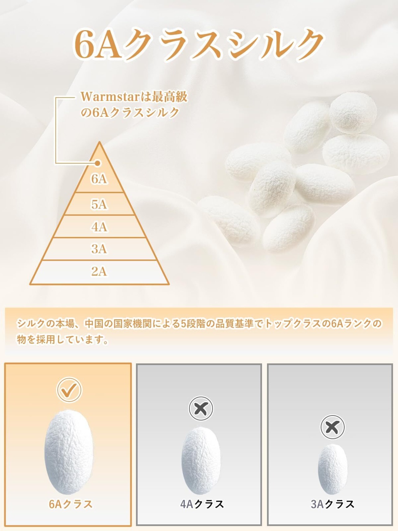 【6Aクラス・シルク100%】Warmstarシルク枕カバーは、片面が100% 6Aクラスシルクで作られています。天然の高級素材であるマルベリーシルクは、肌や髪を健康に保つだけでなく、贅沢な楽しみももたらします。
