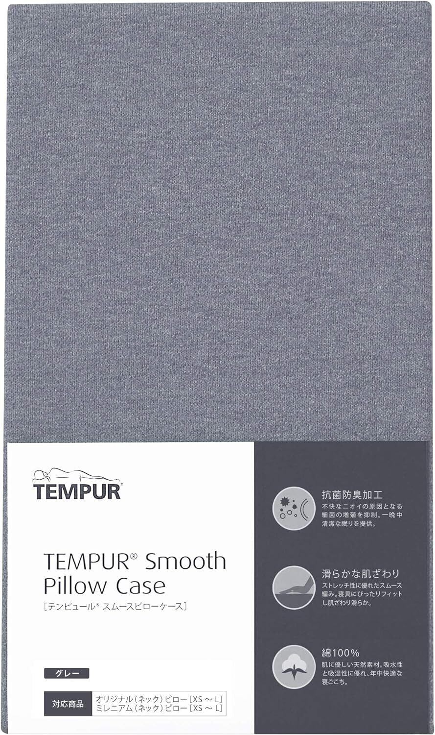 テンピュール(Tempur) 枕カバー グレー スムースピローケース オリジナルピロー・ミレニアムピロー XS~L用 イーズ サポートピロー用 なめらか 抗菌防臭 伸縮性 ピローカバー 73006424