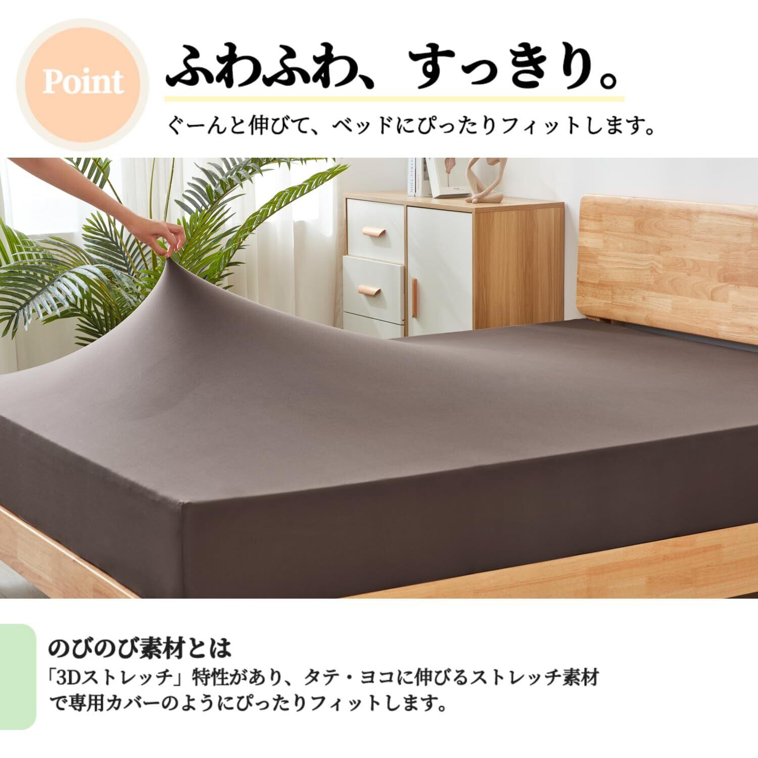 【全周ゴム保護】伸びる生地、全周保護。全周ゴム付け、マットレスを全面的にカバーし、シワが出にくく、着脱も簡単。マチ部分は約35cmになります。無地なのでどんなお部屋にも合わせやすい。マットレス用、敷ふとんなどにも使えます。繰り返し寝返ってもズレにくく、寝相が悪くても大丈夫です。毎朝時間をかけて整理する必要がありません。
