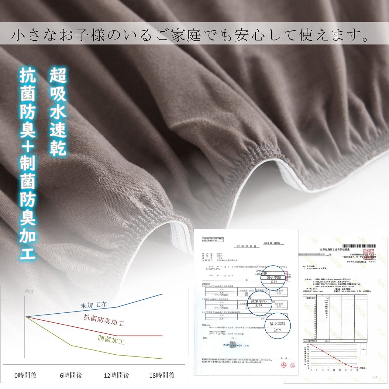 【抗菌 · 消臭】優れた抗菌防臭効果で細菌の増殖を抑制し、防臭効果を発揮します。生地は吸水性と通気性に優れて、汗かき体質の方にもおすすめです。
