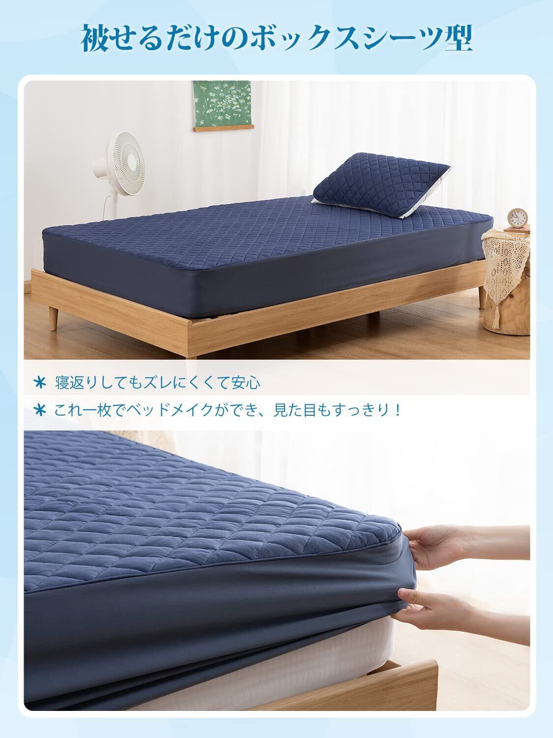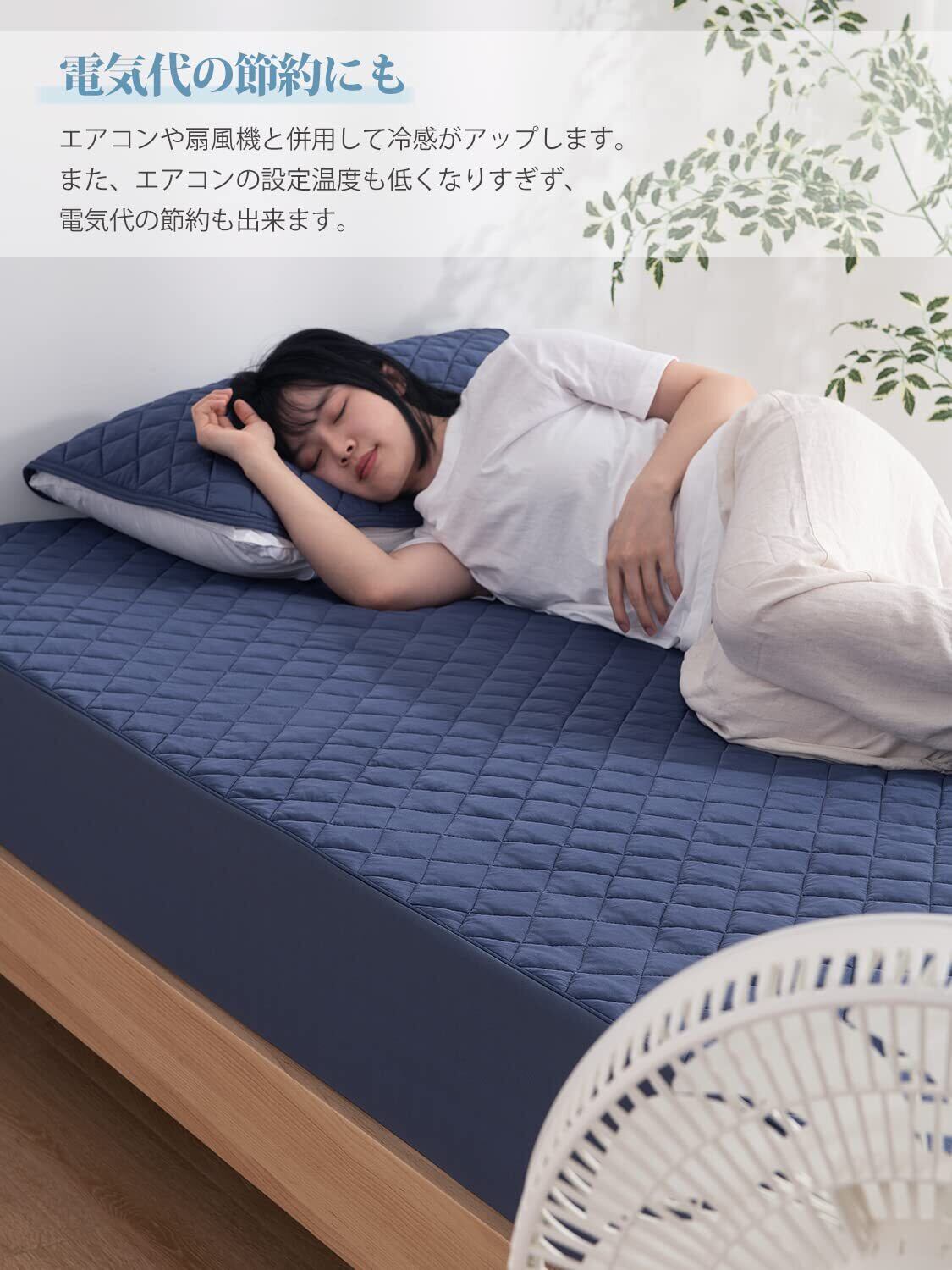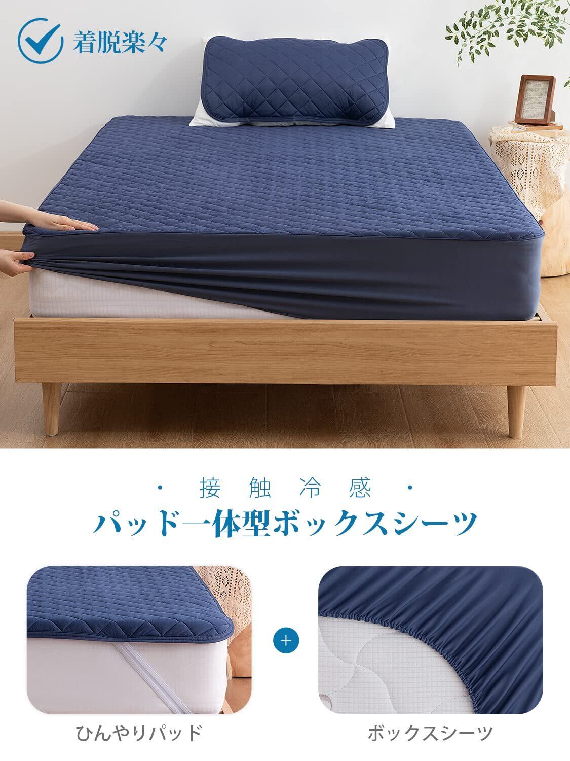 【特価セール】クモリ(Kumori) 接触冷感 セミダブル パッド一体型ボックスシーツ Q-MAX0.483 強冷感&速乾 サラサラ夏用 洗濯可 ムレない 着脱楽々 時短 一枚2役 パッドとシーツが合体してお手入れ簡単 ズレにくい ひんやり ボックスシーツ ネイビー 120X200cm