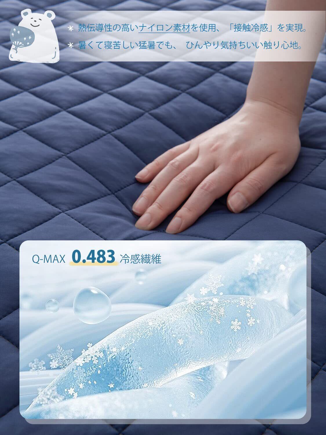 【商品情報】サイズ-セミダブル・120X200cm 素材-表地:ナイロン(接触冷感素材) その他:ポリエステル100% 仕様-全周ズレ防止ゴム付き、25cmまでのマットレスに対応。 産地-中国
