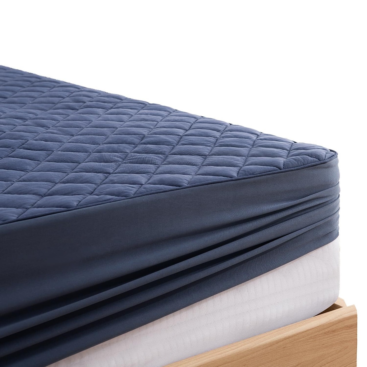【一体型デザイン】ベッドパッドとボックスシーツが一体化しており、側面もしっかり覆われているため、見た目もスッキリ。寝具コーディネートが簡単で、セットするのも楽々です。