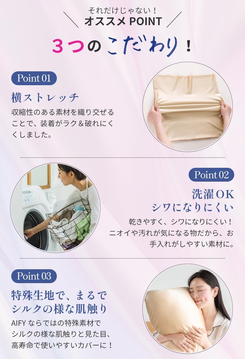 【在庫限り】AIFY シルク調 枕カバー 冷感 枕カバー43 63 ひんやり ピローケース キャップ型 脱着簡単 肌ざわり 髪にやさしい ツルツル 摩擦軽減 洗える おしゃれ プレゼント 1枚入 シャンパンゴールド