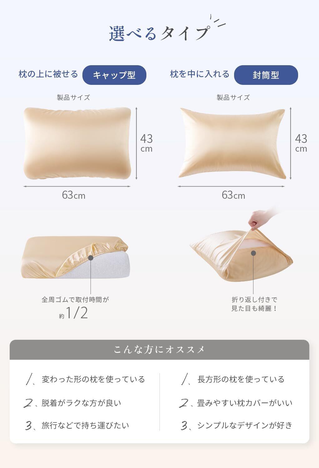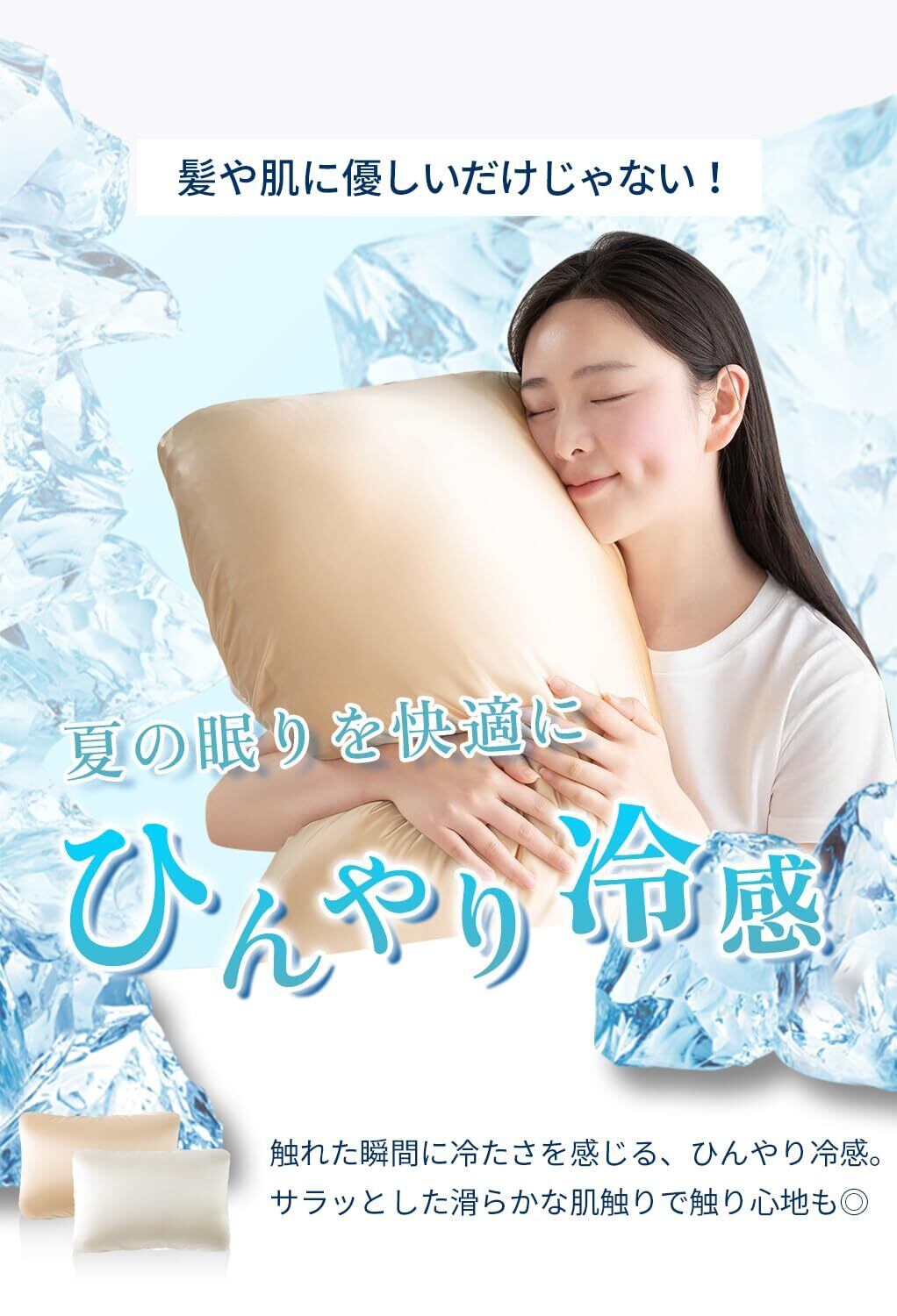 AIFY シルク調 枕カバー 冷感 枕カバー43 63 ひんやり ピローケース キャップ型 脱着簡単 肌ざわり 髪にやさしい ツルツル 摩擦軽減 洗える おしゃれ プレゼント 1枚入 シャンパンゴールド