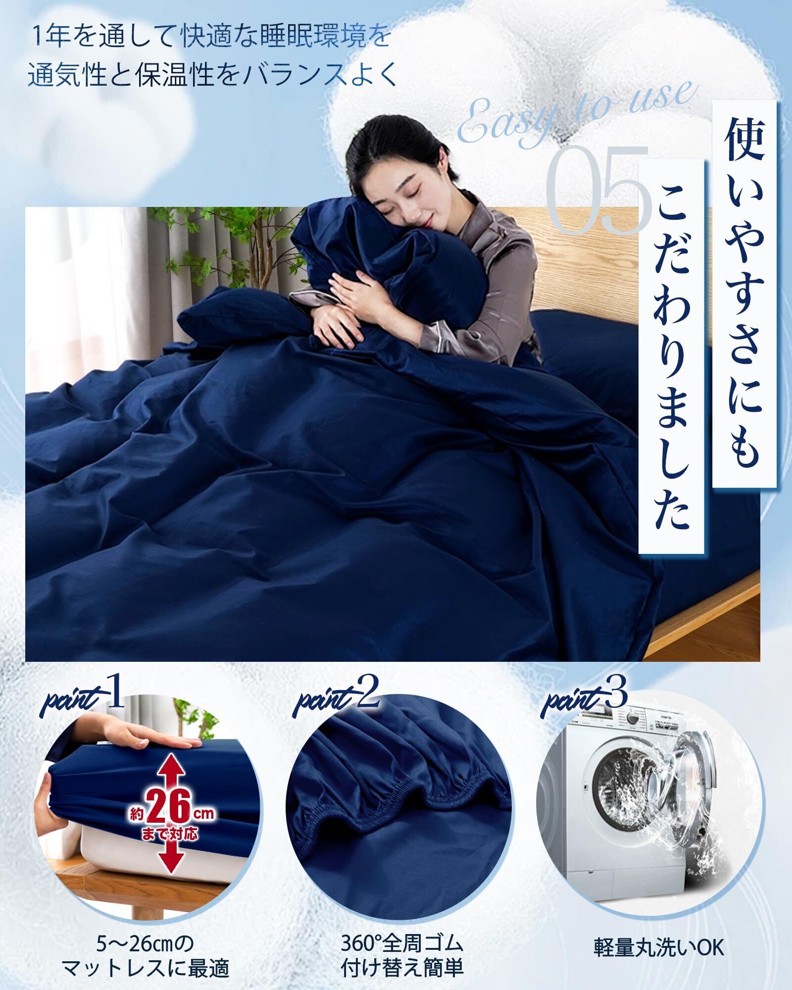 【使いやすいデザイン・仕様】ボックスシーツ シングル 綿100%: 100x200x30cm 全周ゴム付け、マットレスを全面的にカバーし、着脱も簡単。マチ部分は約30cmになります。無地なのでどんなお部屋にも合わせやすい。繰り返し寝返ってもズレにくく、寝相が悪くても大丈夫です。毎朝時間をかけて整理する必要がありません。 【オールシーズン大活躍素材 洗濯機対応】コートン100%のボックスシーツは暑すぎず寒すぎず、保温力が適度にあり、洗濯を重ねて使い込むほど、素材の柔らかさが増やします。春用、夏用、秋用、長い季節に心地よく使えます。<洗濯機で丸洗いOK>:家庭用洗濯機での丸洗いが可能。速乾性に優れ、洗濯ネット使用でわたズレなし。常に清潔で、メンテナンスも簡単です。