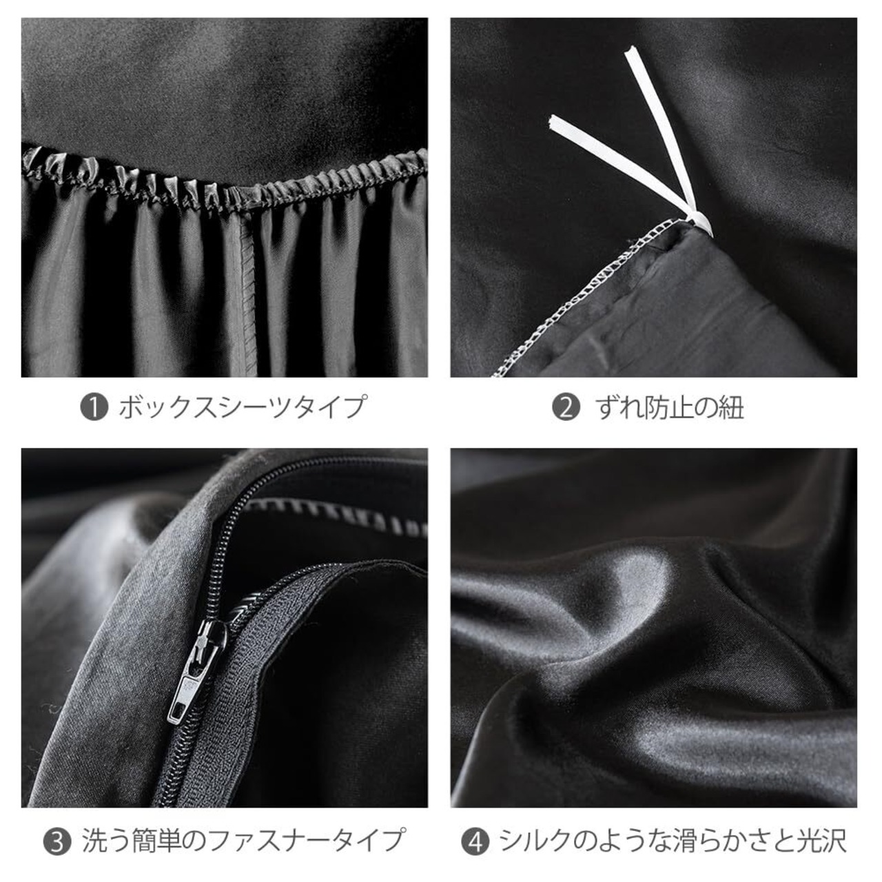 布団カバー セット 涼感 おしゃれ ツルツル ボックスシーツ 冷感 夏用 シルクみたい サテン ツヤ 光沢 シングル セミダブル レーヨン 柔らか 可愛い 布団カバーセットフリル付き 優しい 肌触り 寝具 掛布団 おしゃれ 北欧 まくら 丸洗いOK 和式 洋式 (ブラック, セミダブル4点セット)