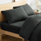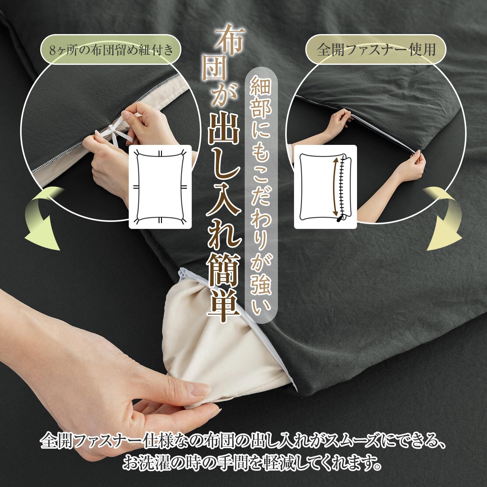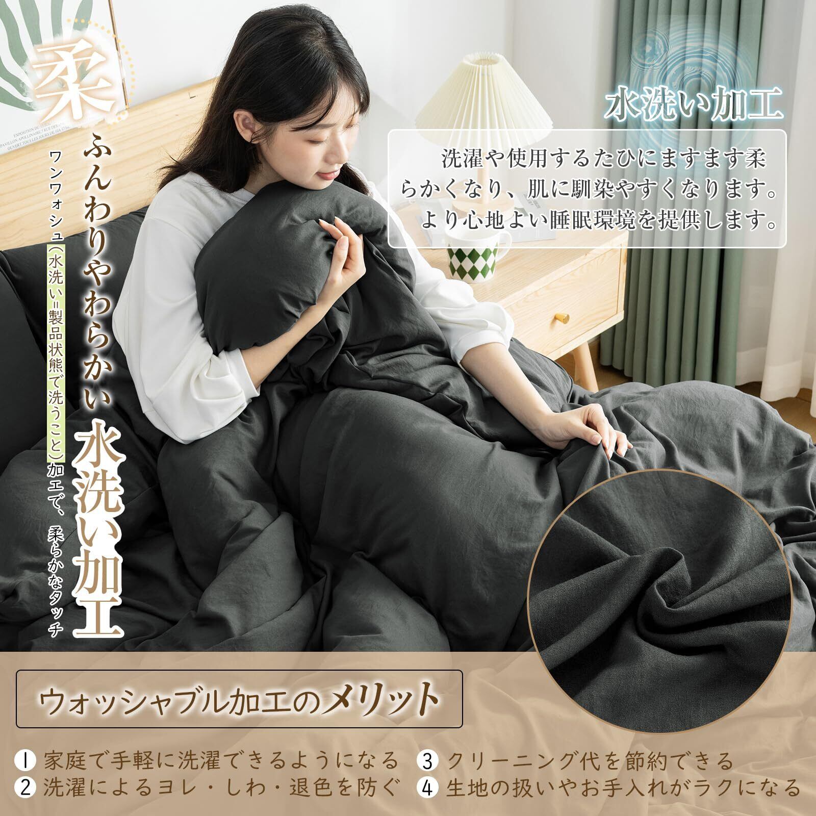 【在庫限り】Housecover 布団カバー シングル 3点セット 寝具カバーセット【水洗い加工&超柔らかい】掛け布団カバー 洋式ベッド・和式布団兼用 ボックスシーツ 洗いざらしシワ加工 やわらか 肌触り 吸水速乾 丸洗い 無地 シンプル オールシーズン(掛け布団カバー シングル・3点セット ブラック)