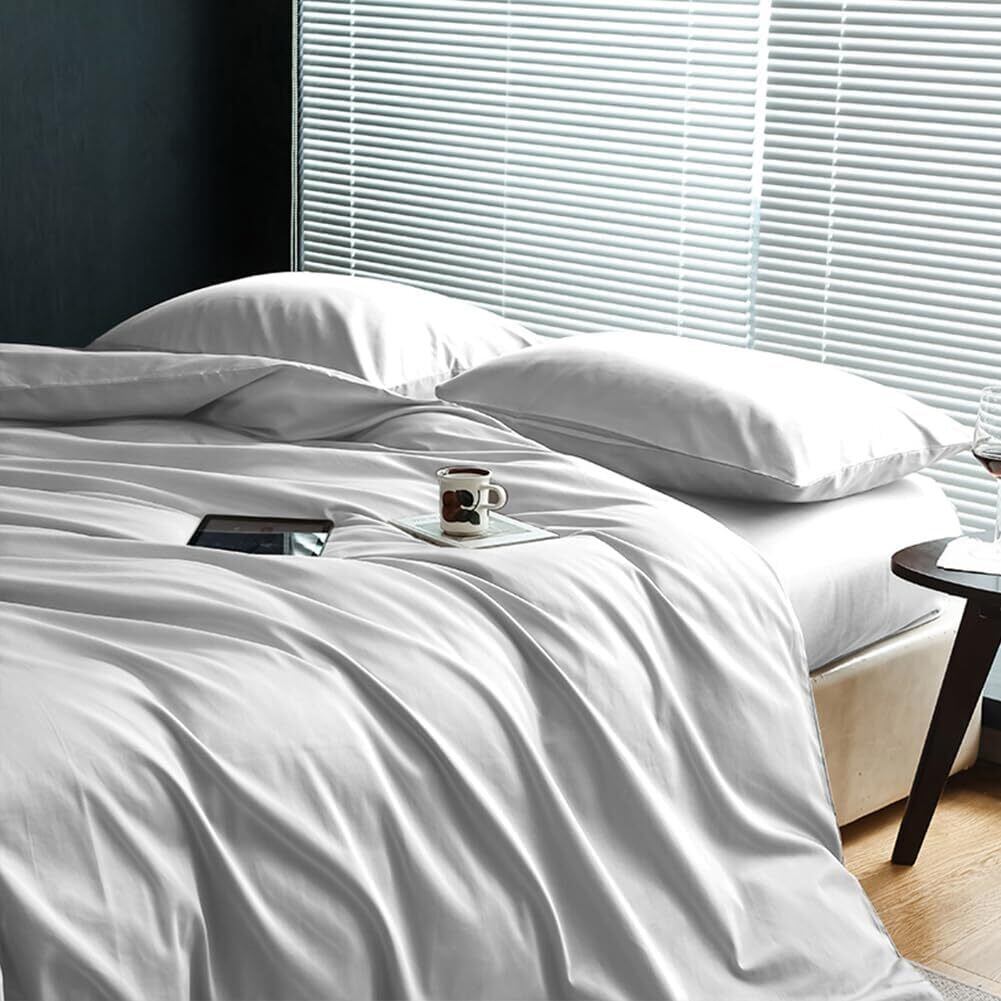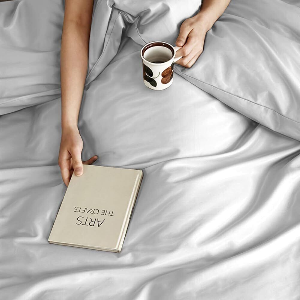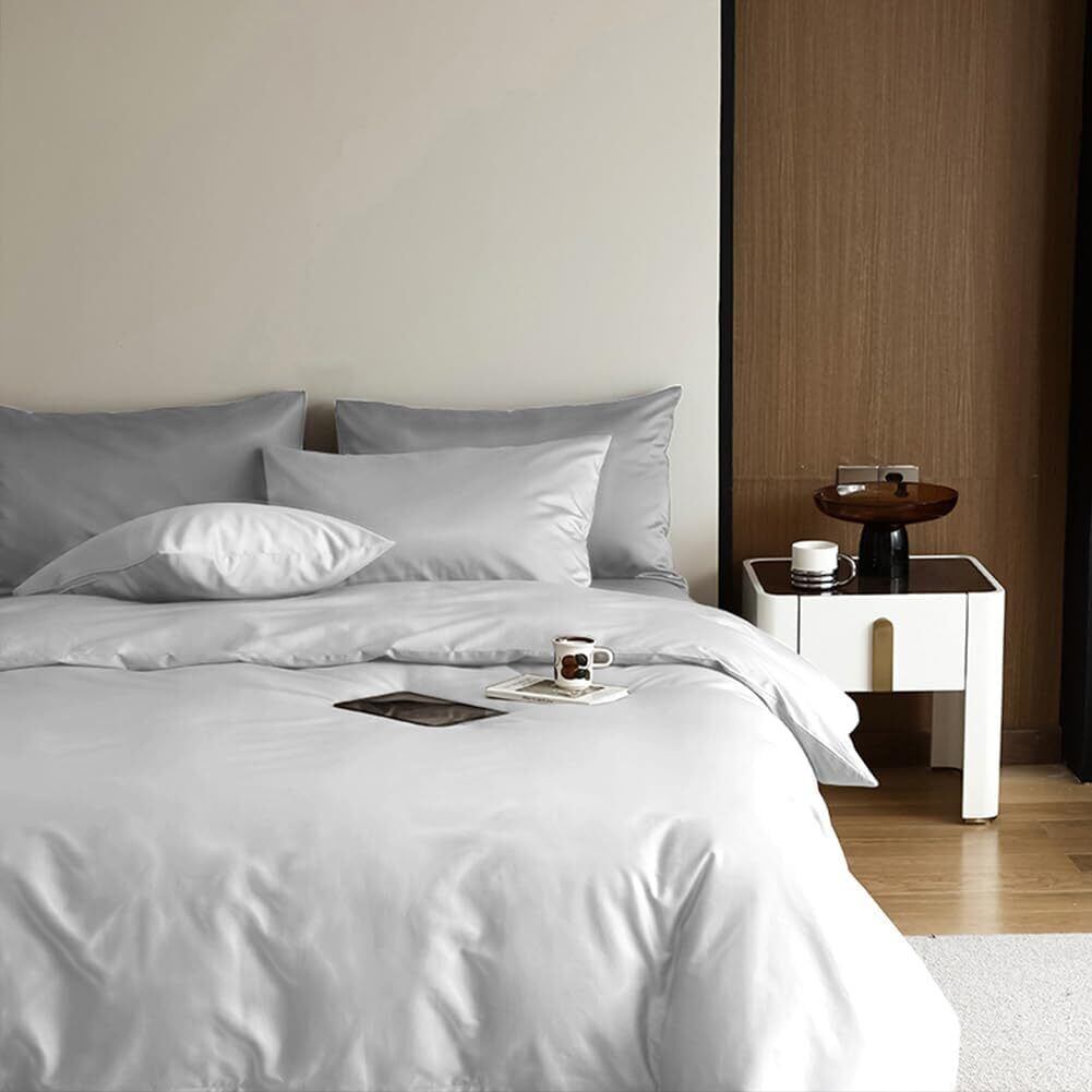 【在庫限り】布団カバー 4点セット セミダブル サテン 光沢 艶感 布団かばー ベットカバー セット 無地 8ヶ所ヒモ付き 洗い替え 美肌 美髪 ライトグレー