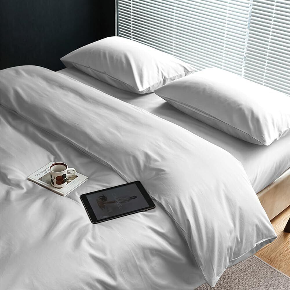 【素材】: 綿,マイクロファイバー。50Sコットン(良質で高価な50番手の超極細糸)とマイクロファイバー混ぜ合わせてサテン織り,1インチ間にはなんと300本の高密度