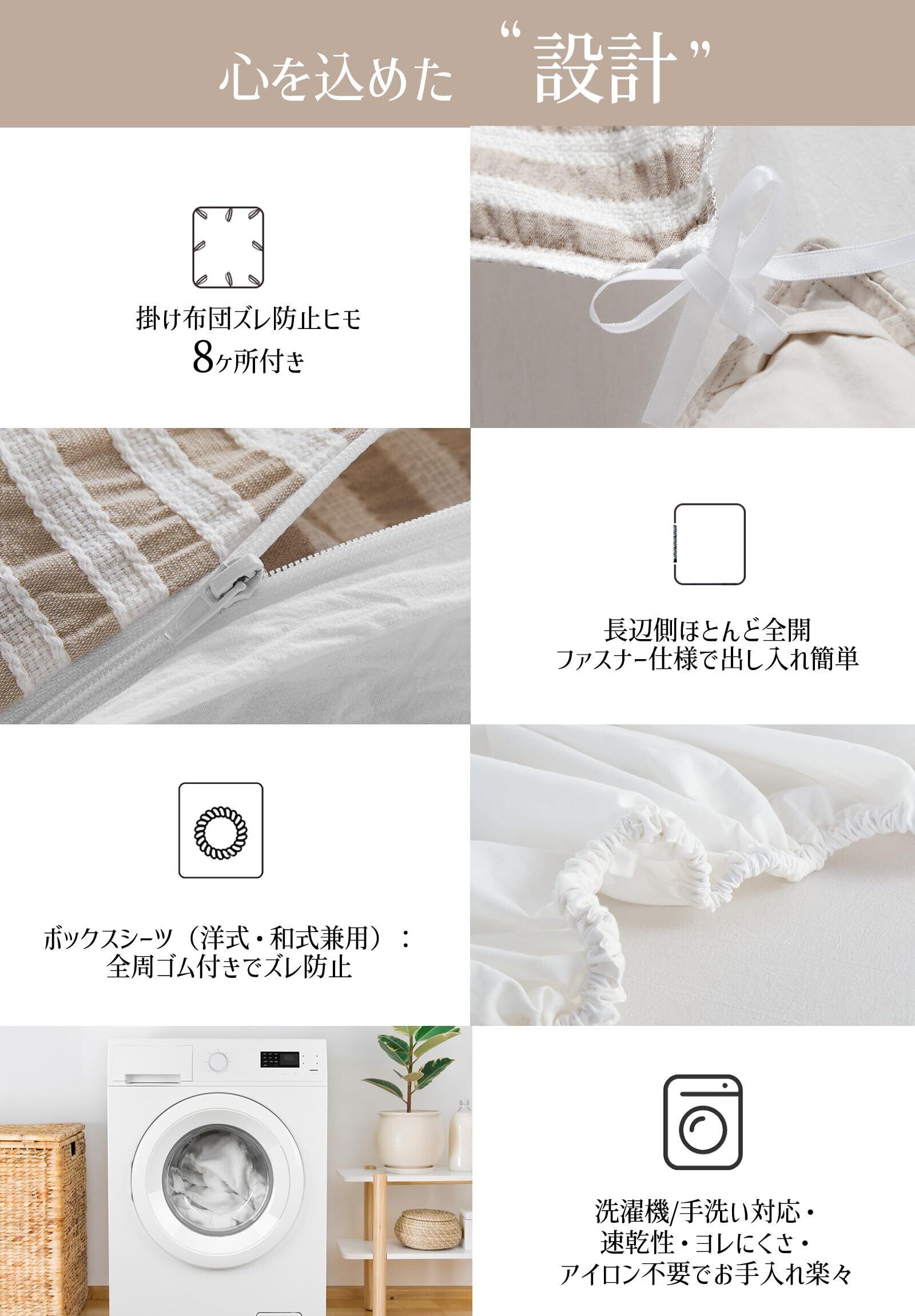 使い勝手抜群: 掛け布団カバーの側面ファスナーで布団の出し入れがラク、ボックスシーツの伸縮バンドで脱着が瞬時に完了。ベッドカバーセット の便利さを実感してください。