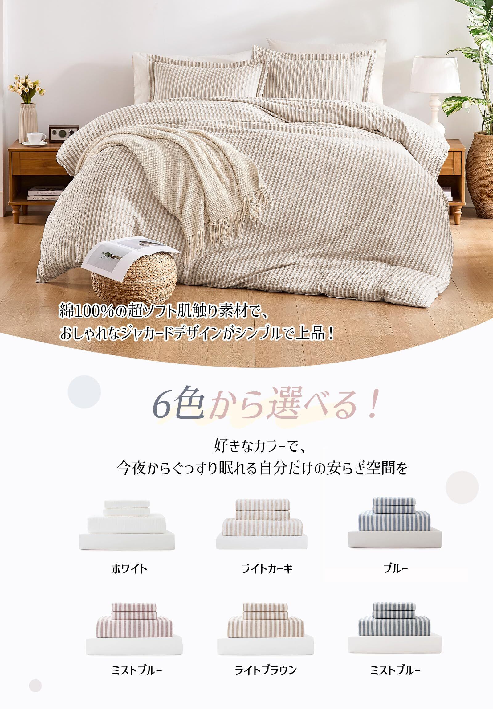 【特価セール】MILDLY 寝具カバーセット 布団カバーセット おしゃれ 綿100% 4点セット シングル ライトブラウン ソフト肌触り ジャカードで洗練デザイン ベッドカバー ベッドカバーセット 自用・来客用・贈答用 掛け布団カバーに固定ひも8本&側面ファスナー ボックスシーツ全周伸縮バンドで簡単着脱 布団カバー 3点セット シングル 洗い替え速乾