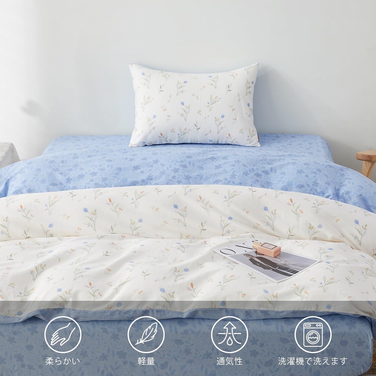 【セット内容&仕様】:「170X210cm掛け布団カバー(1枚)」: 布団留めひも8ヶ所付き ・ 「 120x200+30cmボックスシーツ(1枚)」 / 通・ 「枕カバー(2枚)」:封筒型で、出し入れが簡単 「素材」:100%綿 ※表記サイズより多少小さくなる可能性があります 「洗い加工」を施された100%綿 100%の素材で、洗濯や使用するごとにさらに柔らかくなり、肌馴染みも良くなります。