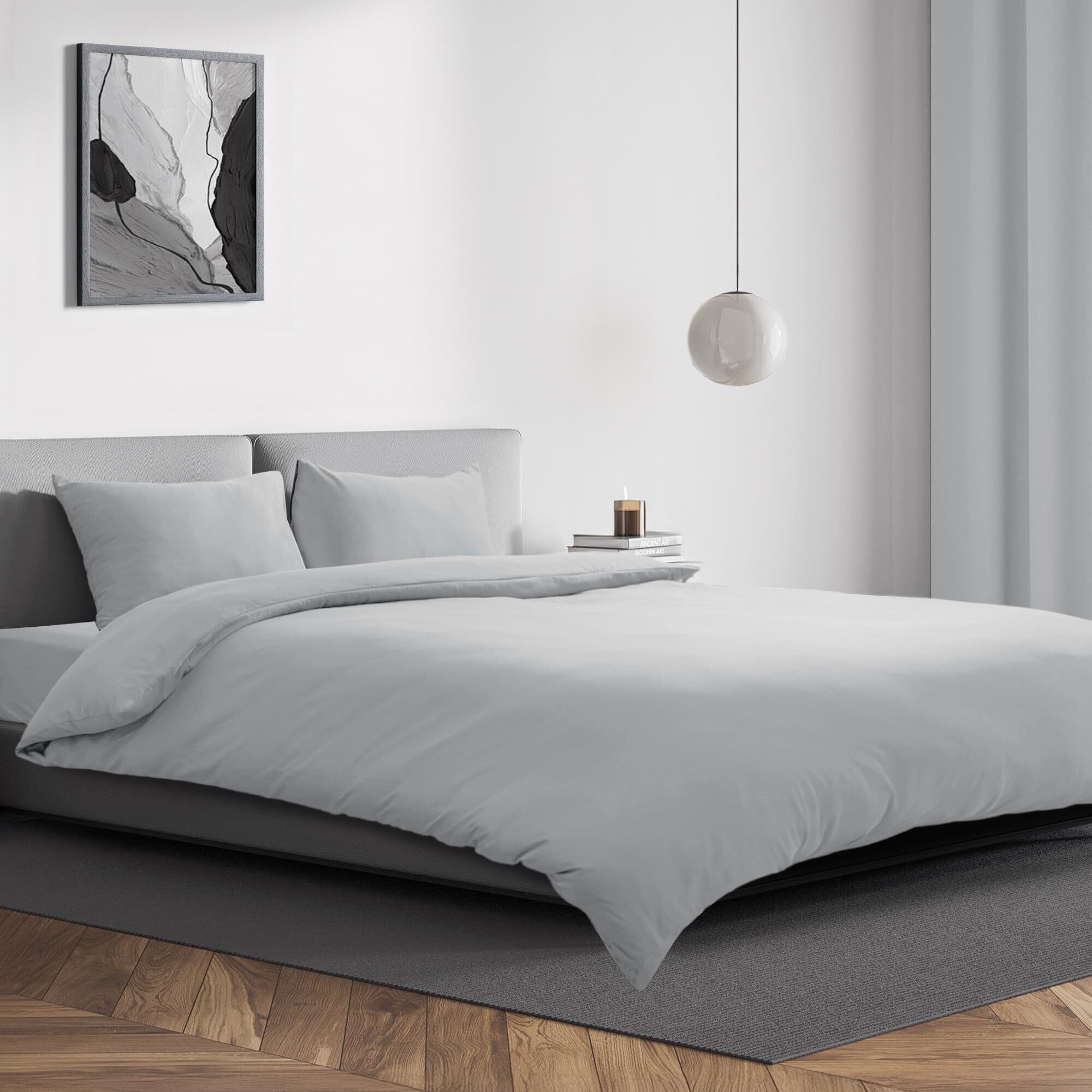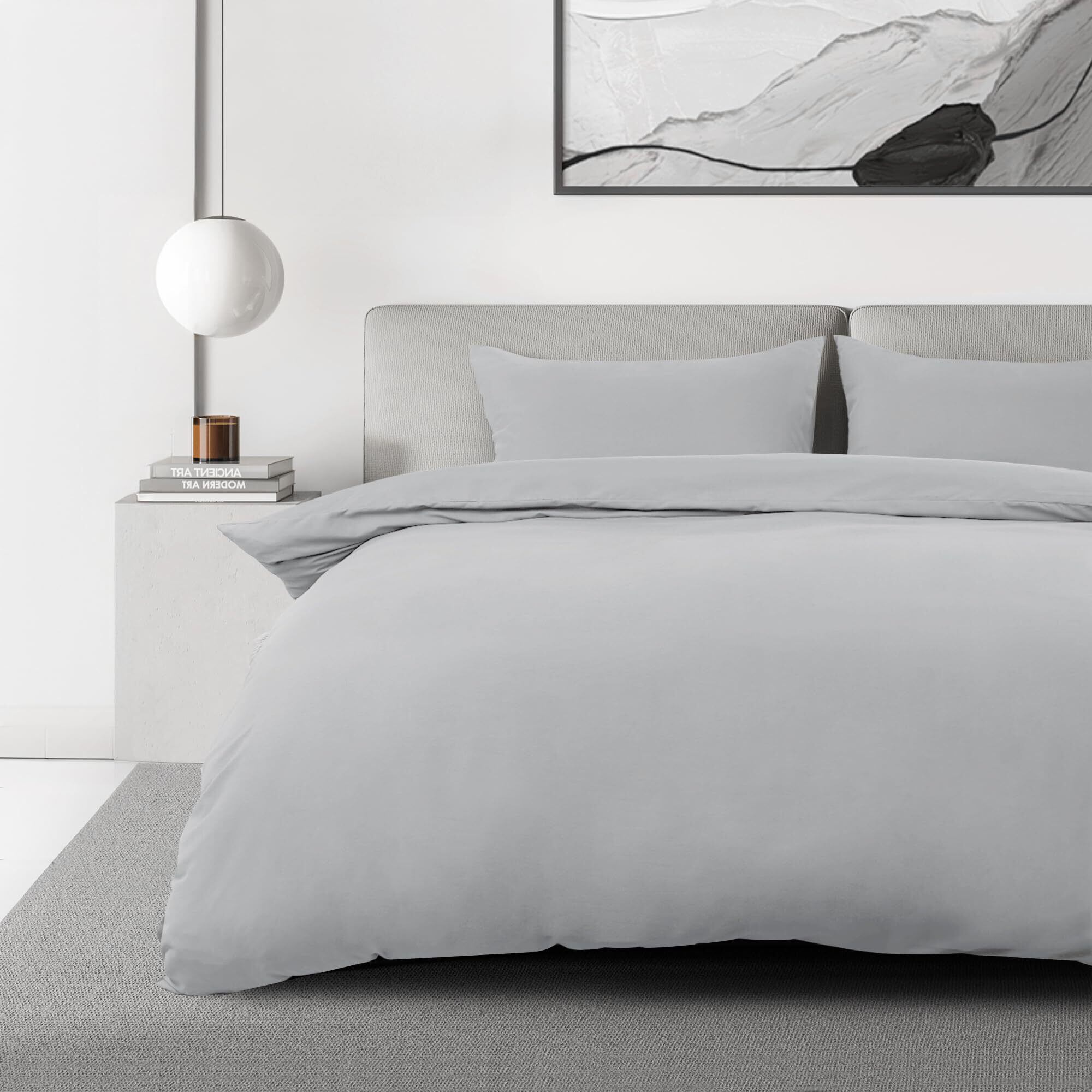 Deconovo 寝具カバーセット 布団カバー セミダブル 4点セット ライトグレー ふとんカバー ボックスシーツ 枕カバー 通気 掛ふとんカバー 丸洗い可能