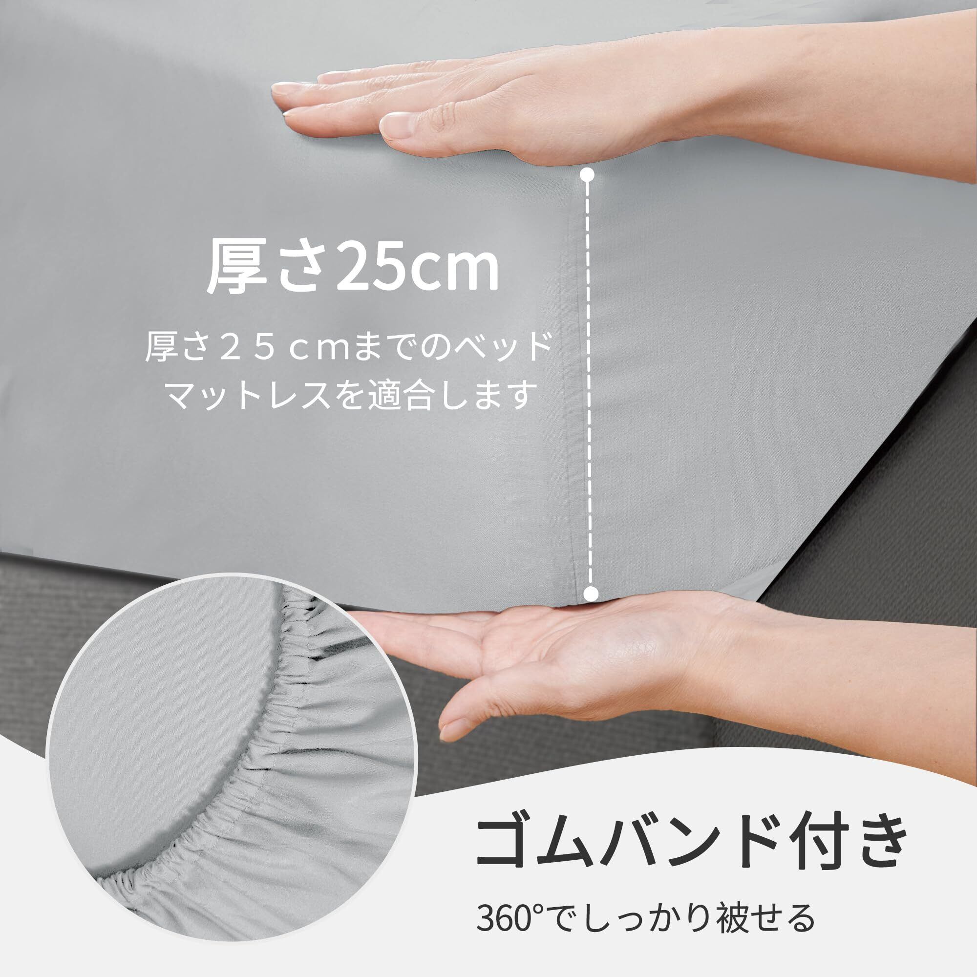 【着脱簡単】掛け布団カバーは全開ファスナー式で、ずれ防止のひも付きます。布団留めひもが4か所付いており、布団のズレを防ぎながら出し入れが簡単です。枕カバーは封筒式です。ファスナーがなく就寝の邪魔になりません。和式用ボックスシーツは全周ゴム仕様です。ボックスシーツには全周ズレ防止ゴムが付いており、マットレスの四隅をぴったり包み込み、フラットでシワになりにくいです。高さ3-28cmのベッド、マットレス、敷き布団に対応できます。