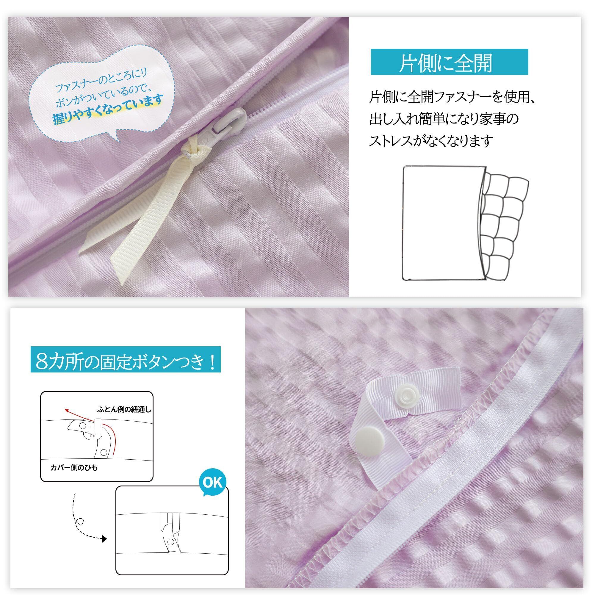 BestOnePlus 掛け布団カバー シングル 羽毛布団カバー 光触媒加工 シアサッカー風 ポコポコ 椿油保湿 静電気防止 柔らかな肌触り 速乾 アレルギー対策 ダニ防止 抗菌 防臭 洗える 全開ファスナー 8箇所スナップボタン 耐久性 色褪せない 洗い替え オールシーズン ストライプ 150X210CM パープル
