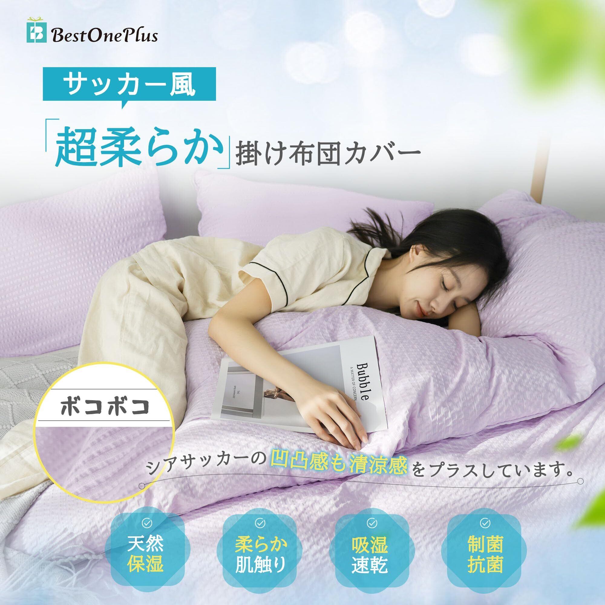 【2025最新】BestOnePlus 掛け布団カバー シングル 羽毛布団カバー 光触媒加工 シアサッカー風 ポコポコ 椿油保湿 静電気防止 柔らかな肌触り 速乾 アレルギー対策 ダニ防止 抗菌 防臭 洗える 全開ファスナー 8箇所スナップボタン 耐久性 色褪せない 洗い替え オールシーズン ストライプ 150X210CM パープル