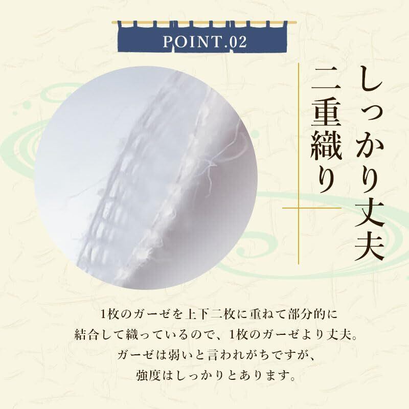 【ガーゼ2重織り】1枚のガーゼを上下2枚に重ねて部分的に結合しました。弱い印象のがーぜですが、強度をアップしています。