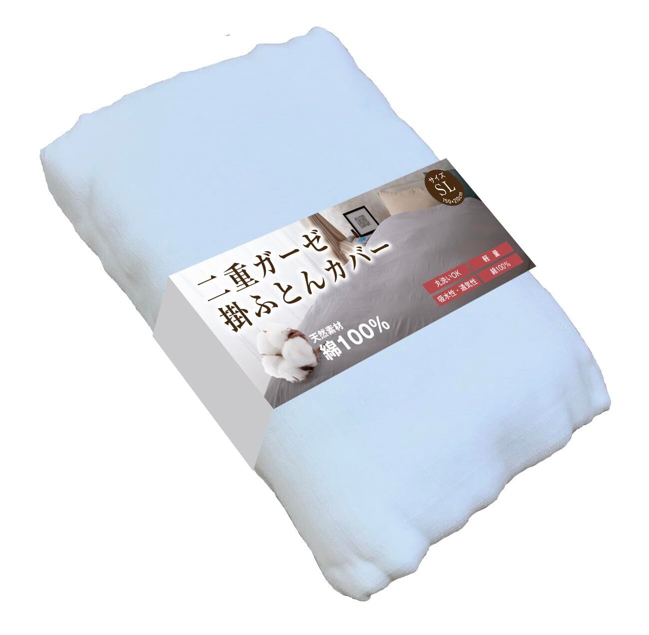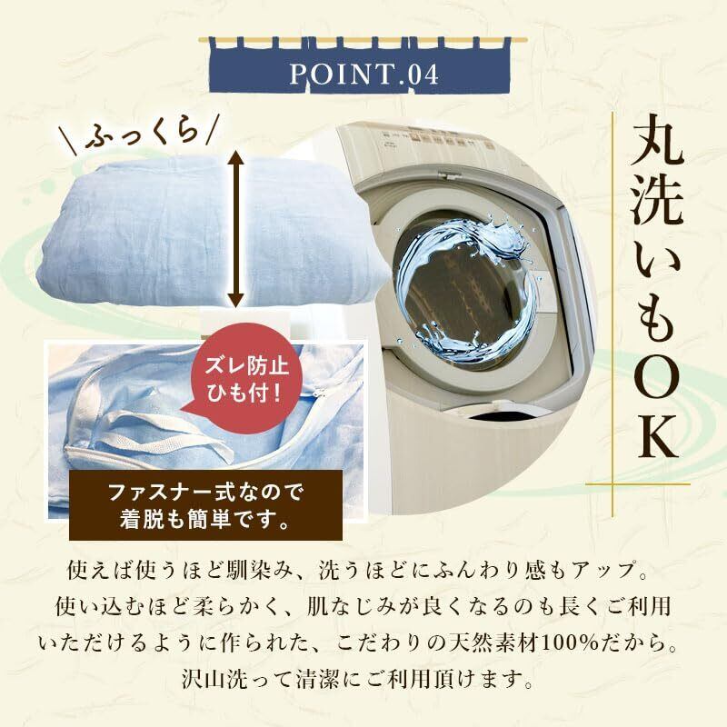 ふとんのふっとんだ 掛け布団カバー 2重ガーゼ 綿100% 寝具 羽毛布団カバー シングル 150x210 丸洗いOK オールシーズン 無地 コットン 肌ざわり 快適 ズレ防止ひも付 (ブルー)