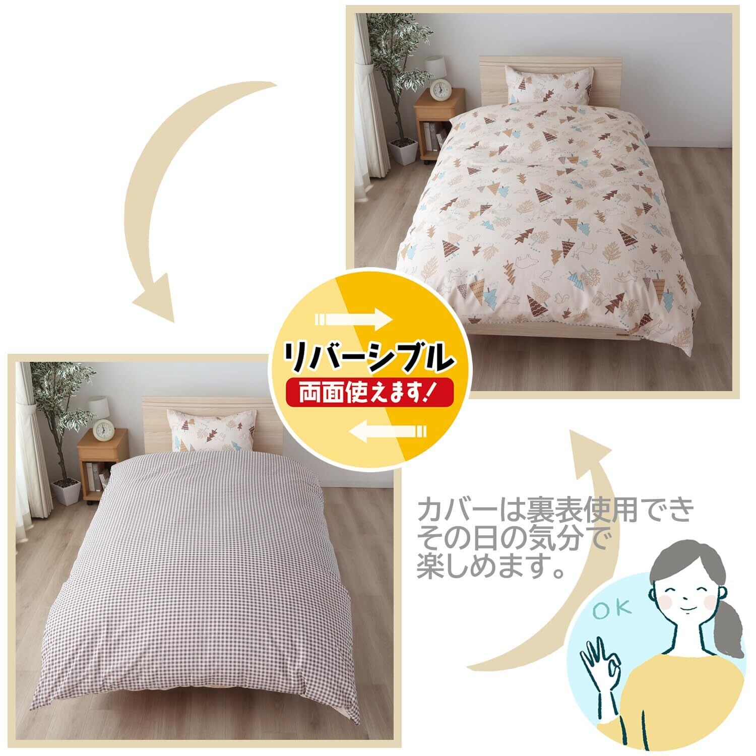 カバーは両面使えるリバーシブル仕様。別売りの枕カバー、敷布団カバーとの組み合わせで様々なカラーコーディネートも楽しめます。