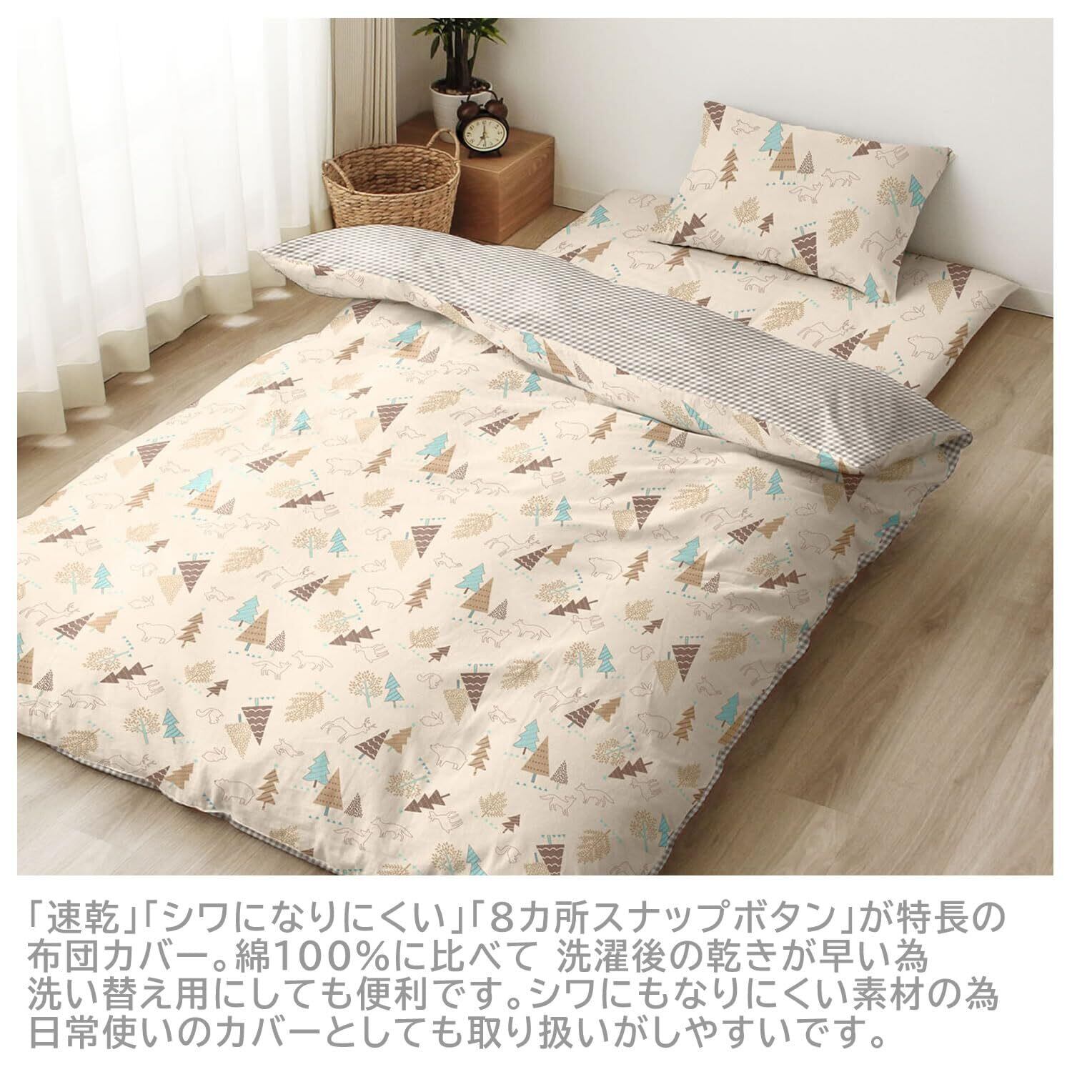 メリーナイト 掛布団カバー 「北欧ツリー/ギンガムチェック」 ブラウン シングルロング 約150×210cm リバーシブル仕様 両面使える 内側スナップボタン8カ所付き 着脱簡単 綿混素材 速乾 シワになりにくい 洗える 衛生 清潔 オールシーズン MN12152-93