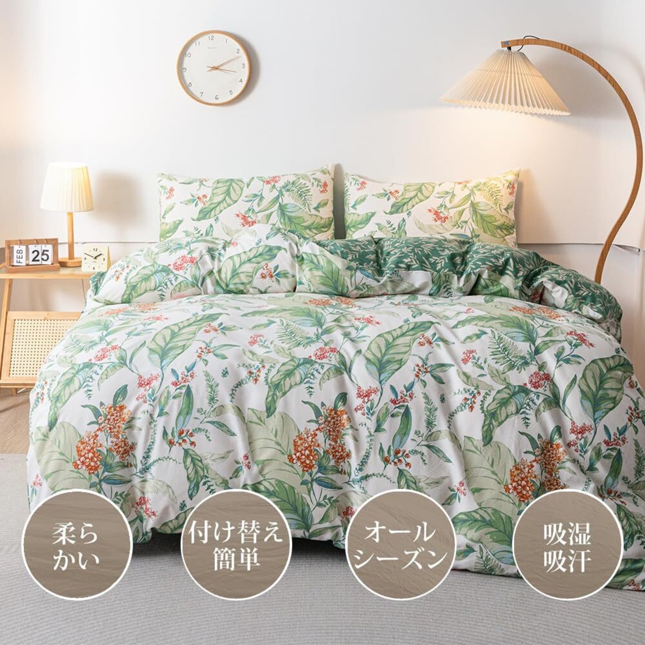 【高品質の生地】はお客様により良い掛けふとんカバーを提供するため、100%の上質な綿素材を使用し、200本の糸を使用した布地を、透湿性に優れ、毛玉が少なく、柔らかく快適な睡眠を提供、四季に適した仕様であり、抗菌・防臭加工が施され、肌に優しい素材です。