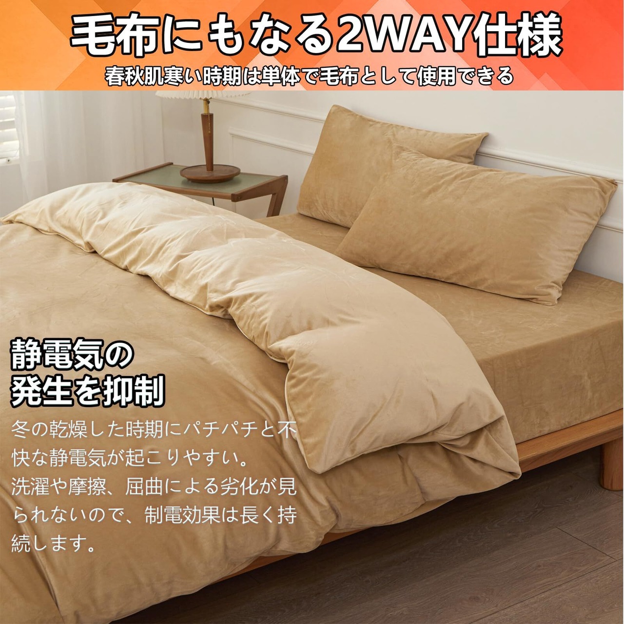 【毛布にもなる2WAY仕様】春秋肌寒い時期は単体で毛布として、寒い時期は羽毛布団や掛け布団と組み合わせて使用できるので長く使えます。季節の変わり目や微妙な温度調節に最適。