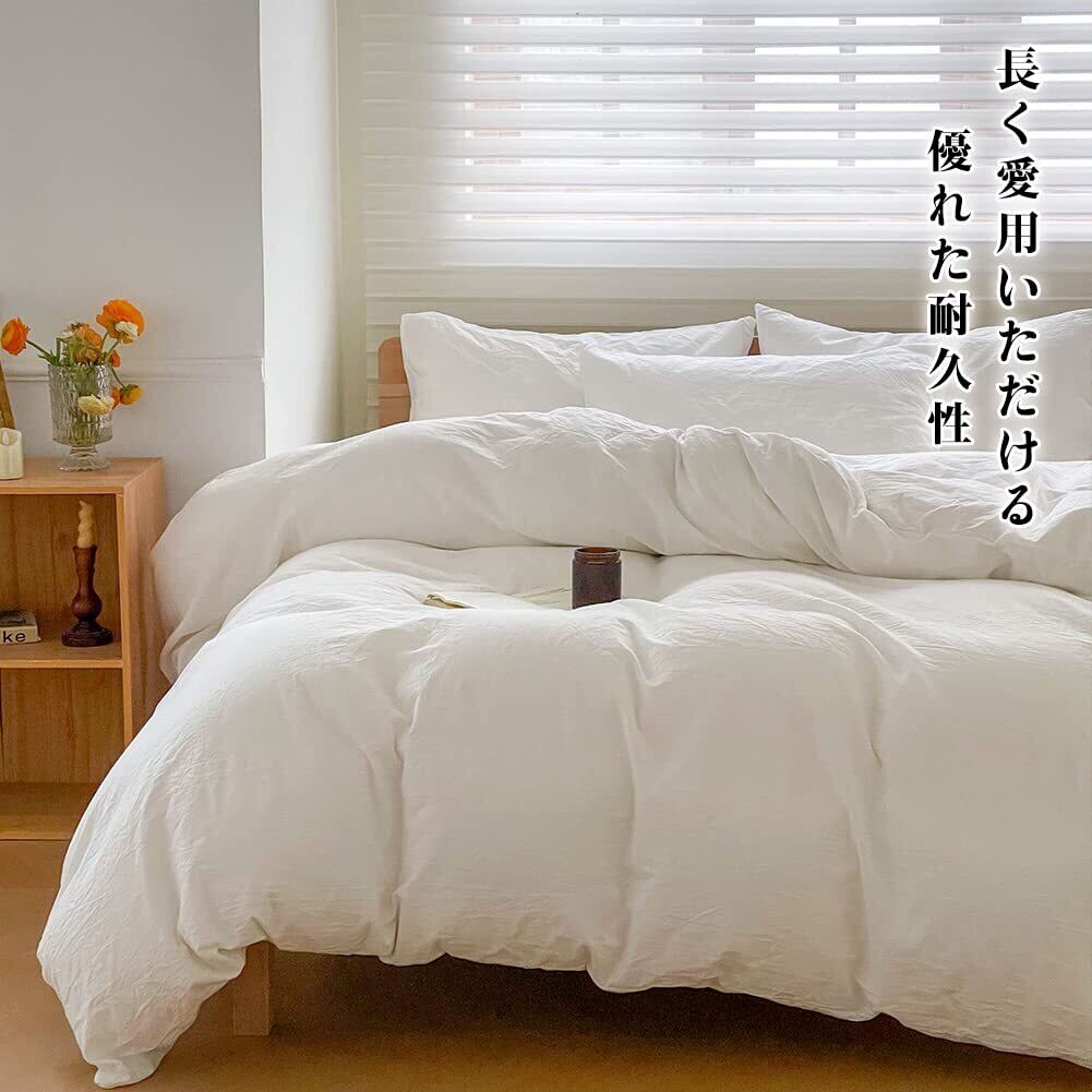 掛け布団カバー シングル オーガニックコットン 綿100% 掛けふとんカバー ふとんカバー 布団カバー 綿洗いざらし オールシーズン 無地 北欧 150*210CM 8ヶ所ヒモ付き 洗い替え 防ダニ 防シワ 速乾 通気 オフホワイト