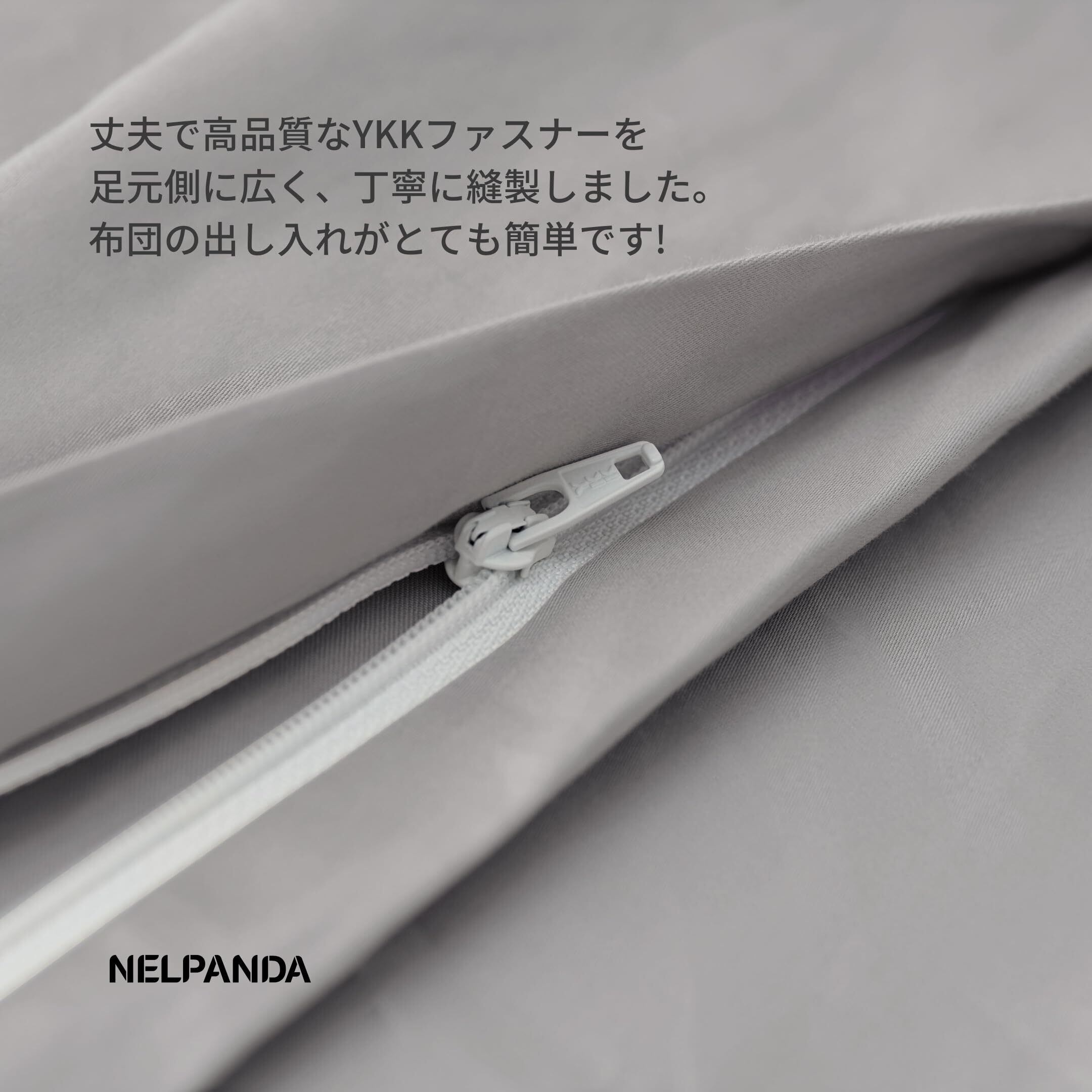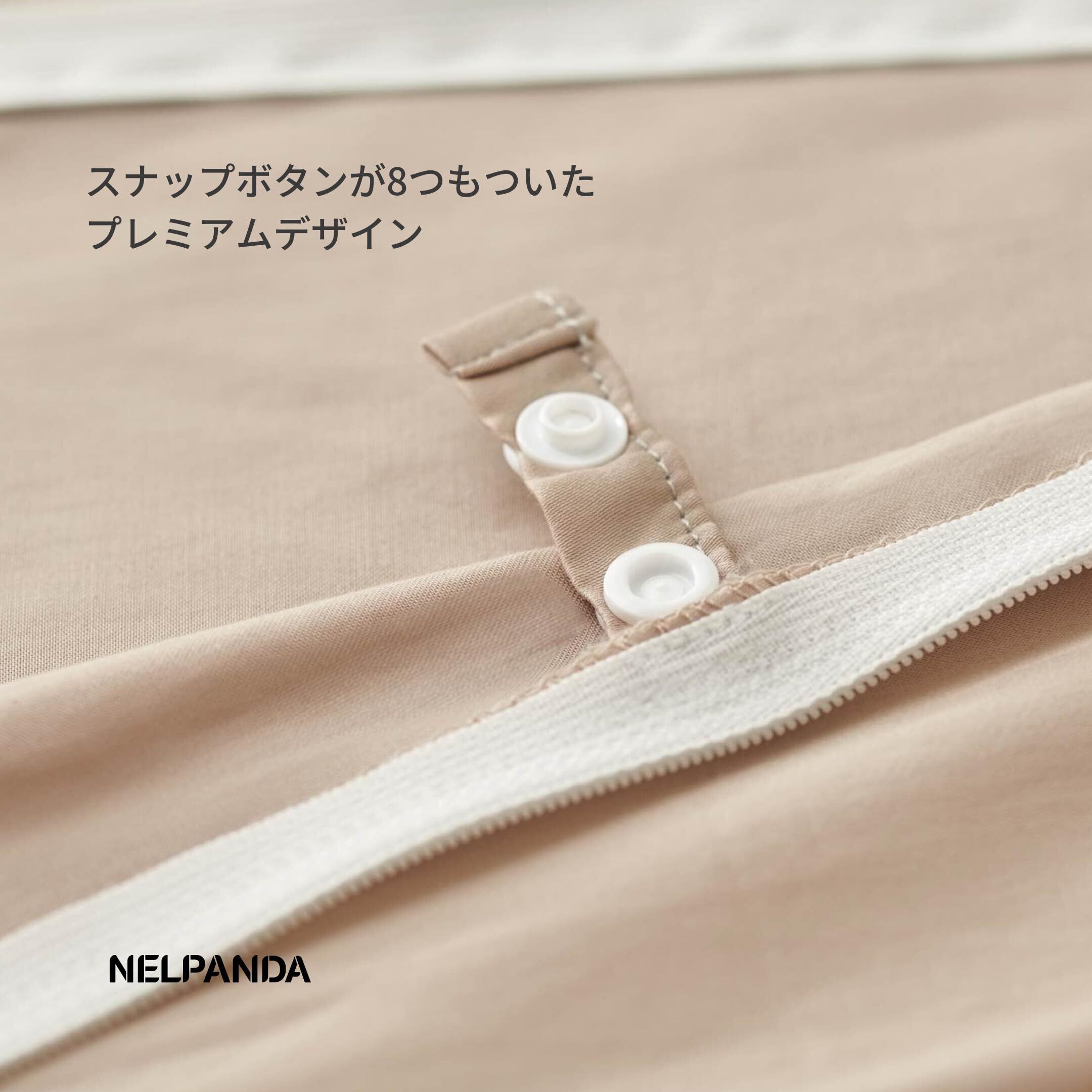 【 8つのボタンとYKKファスナーのプレミアムデザイン】素材選びからデザイン、縫製など細部にこだわって製品化しました。取り外しの簡単なスナップボタンが8ヶ所ついているので、布団をしっかり固定します。 足元側に広く、丈夫で高品質なYKKファスナーを隠し混んで縫製しています。出し入れも簡単、且つ金具がお肌にあたりません。