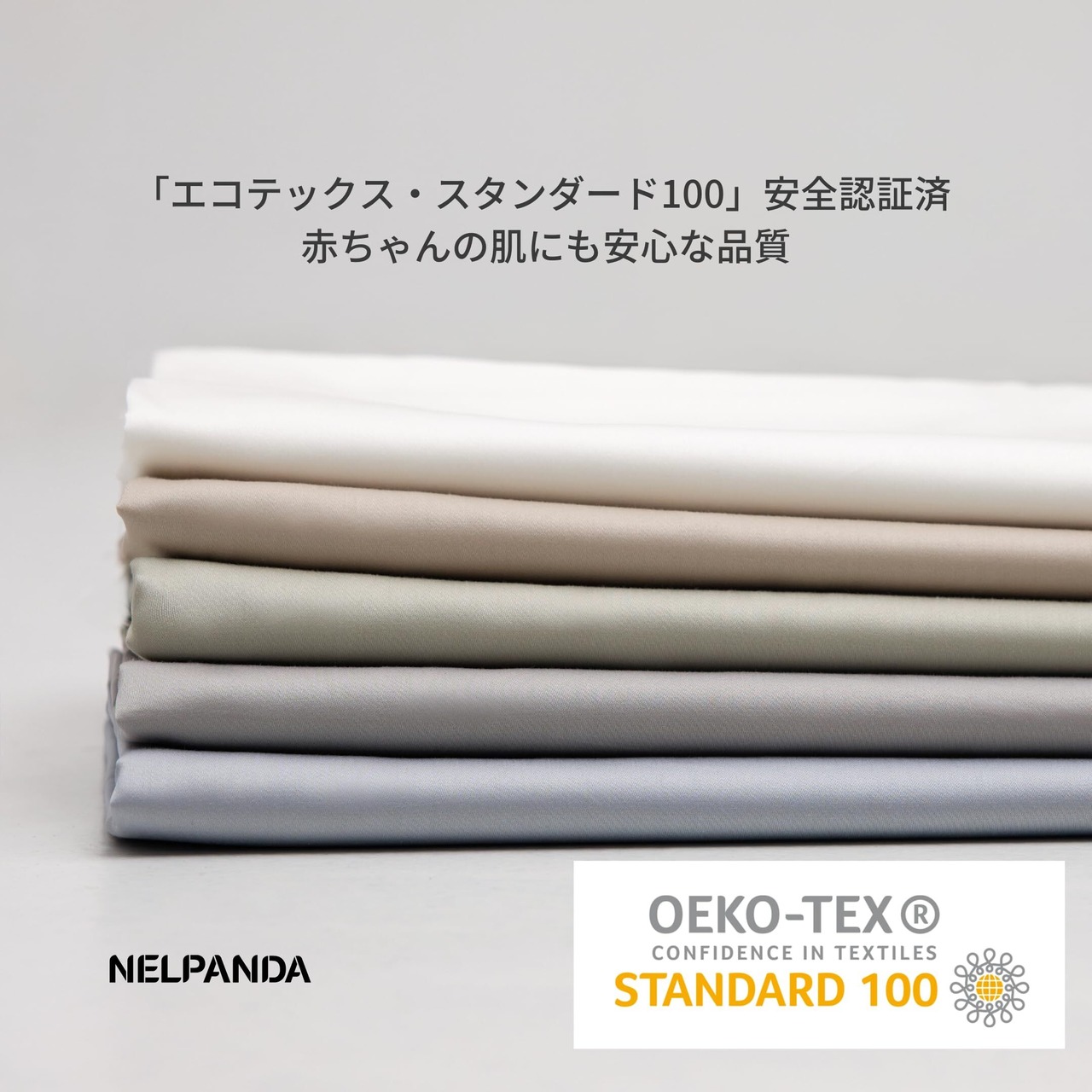 【認証済みの安全な製品】業界高水準の安全性を持つ繊維製品の証である「エコテックススタンダード100 (STANDARD100 by OEKO-TEX)」の製品クラスⅠとして認証済みです。生まれたばかりの赤ちゃんや敏感肌の方も安心して快適にご使用いただけます。