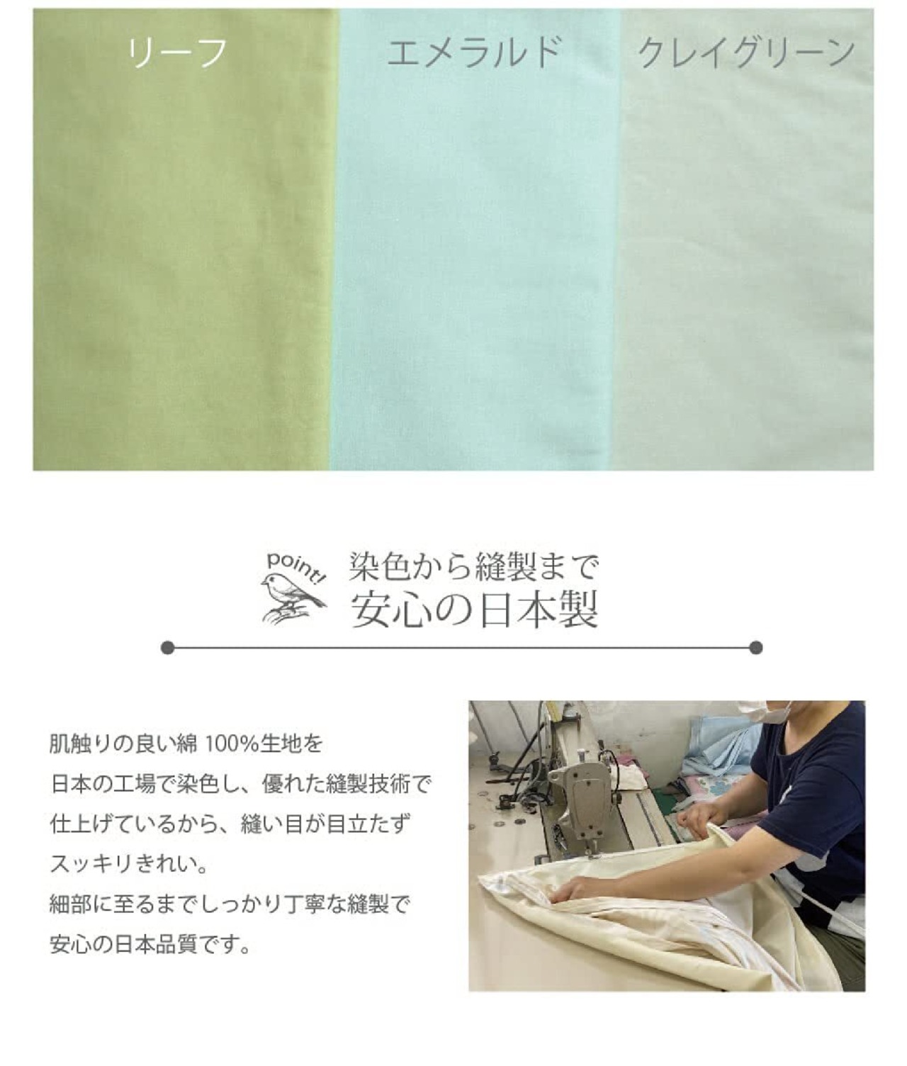 肌触りの良い日本製の綿100%の生地を使用したベッドウェアです。 どんなお布団やお部屋にも合うお色味をご用意!