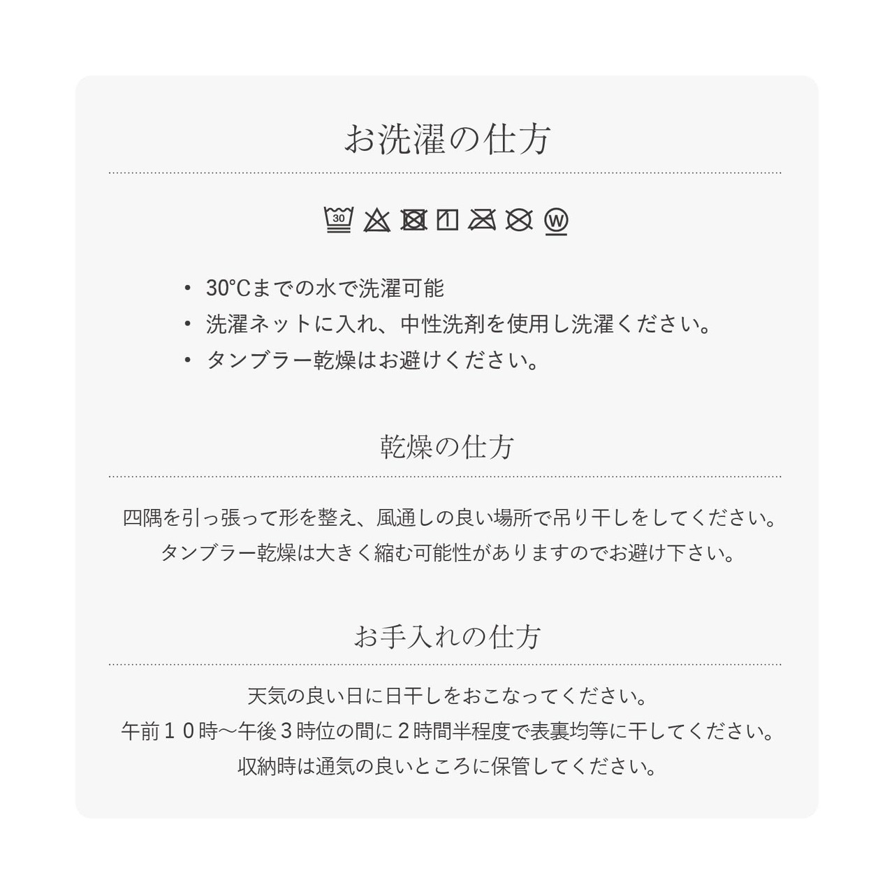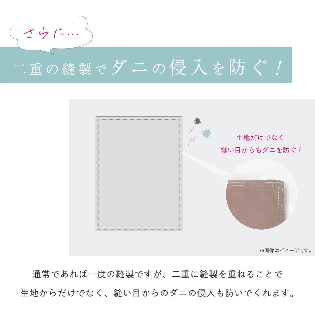 ラミネート加工はしていないので透湿性に優れ、ダニ忌避の薬剤も不使用で安全・安心。