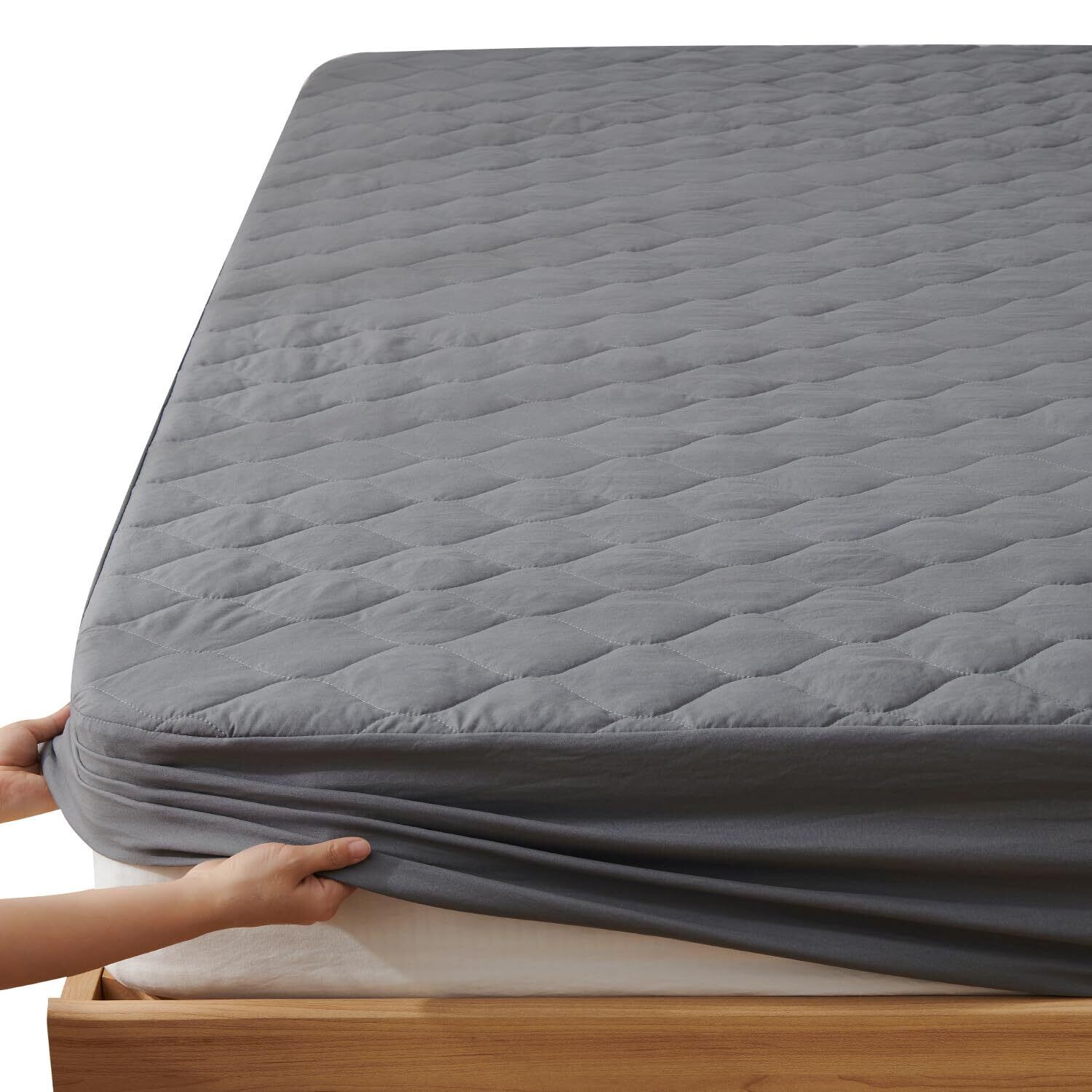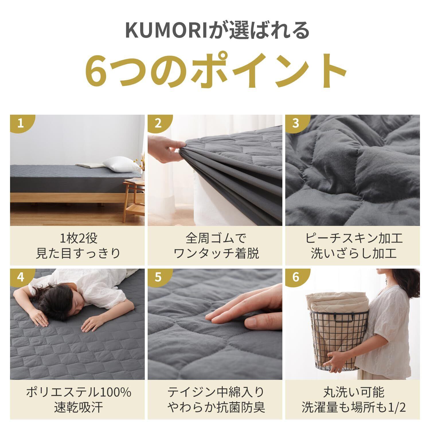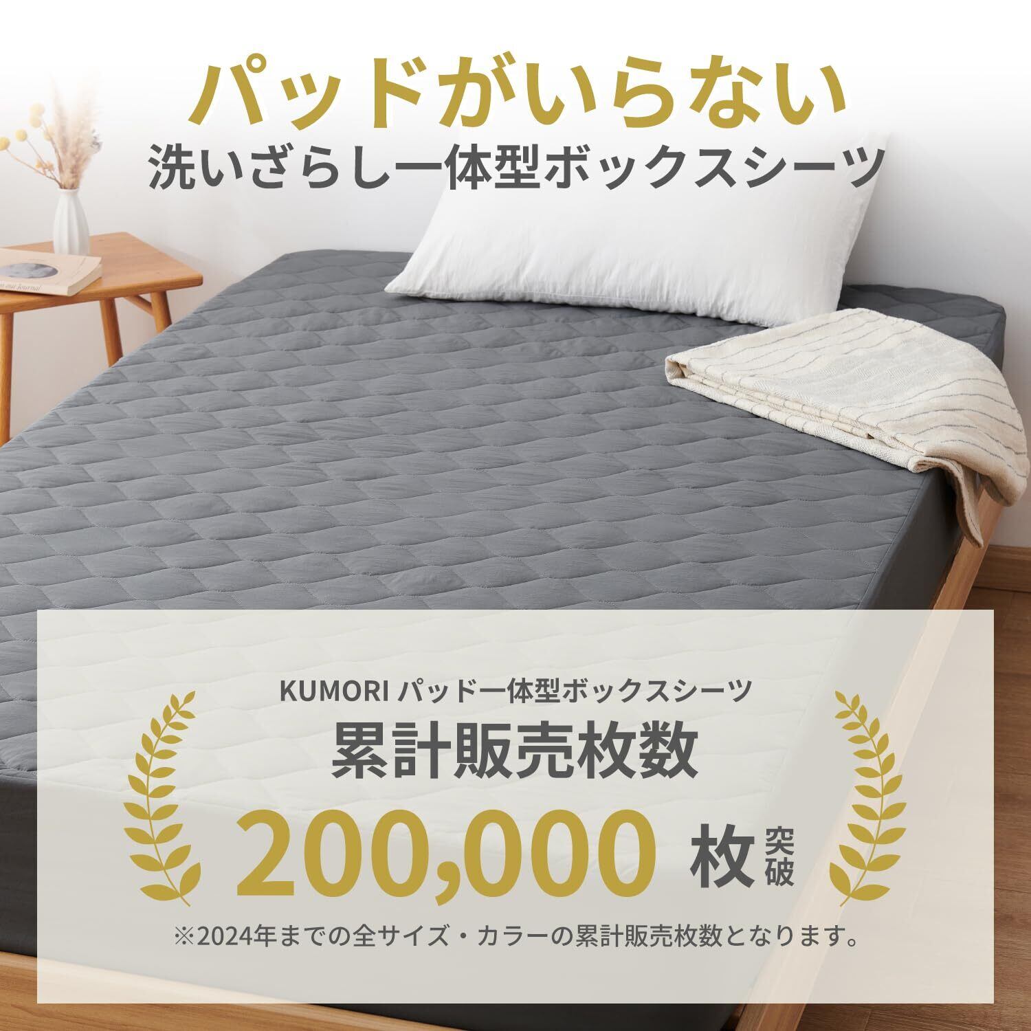 【数量限定】クモリ(Kumori) パッド一体型 ボックスシーツ 洗いざらし 高吸水速乾 1枚2役 ベッドシーツ 敷きパッド 着脱楽々 時短 柔らかい クッション性あり 耐久性が高い お手入れ簡単 洗える オールシーズン (シングル・100X200cm・ダークグレー)