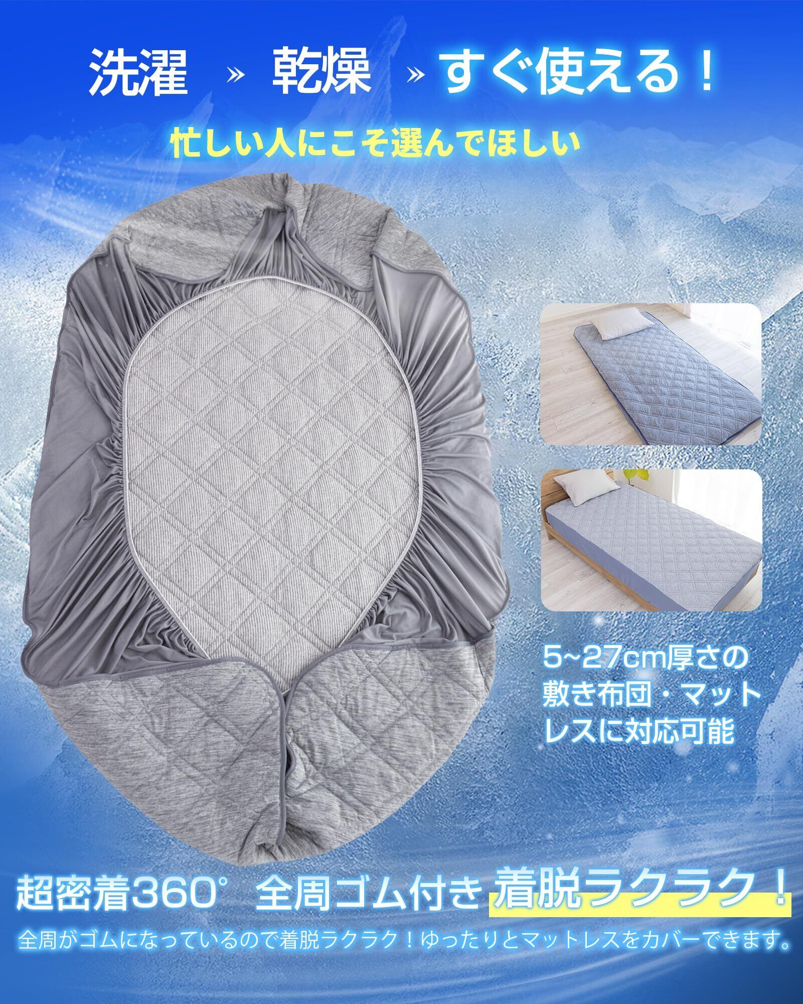 【商品仕様】サイズ:100×200×25cm(シングル)。表地:ナイロン40% ポリエチレン60%。中綿:ポリエステル100%。裏地:ポリエステル100%。冷感素材の特性上、室温が高い場合は生地と体温との差が少なくなってしまうため、冷たく感じにくいです。1年間の品質がございますので、安心してお買い求めください。製造国:中国 商品企画:日本
