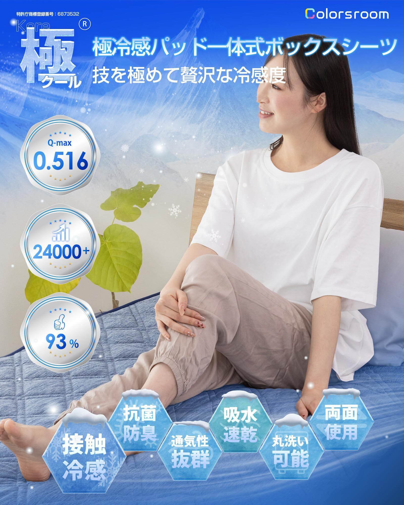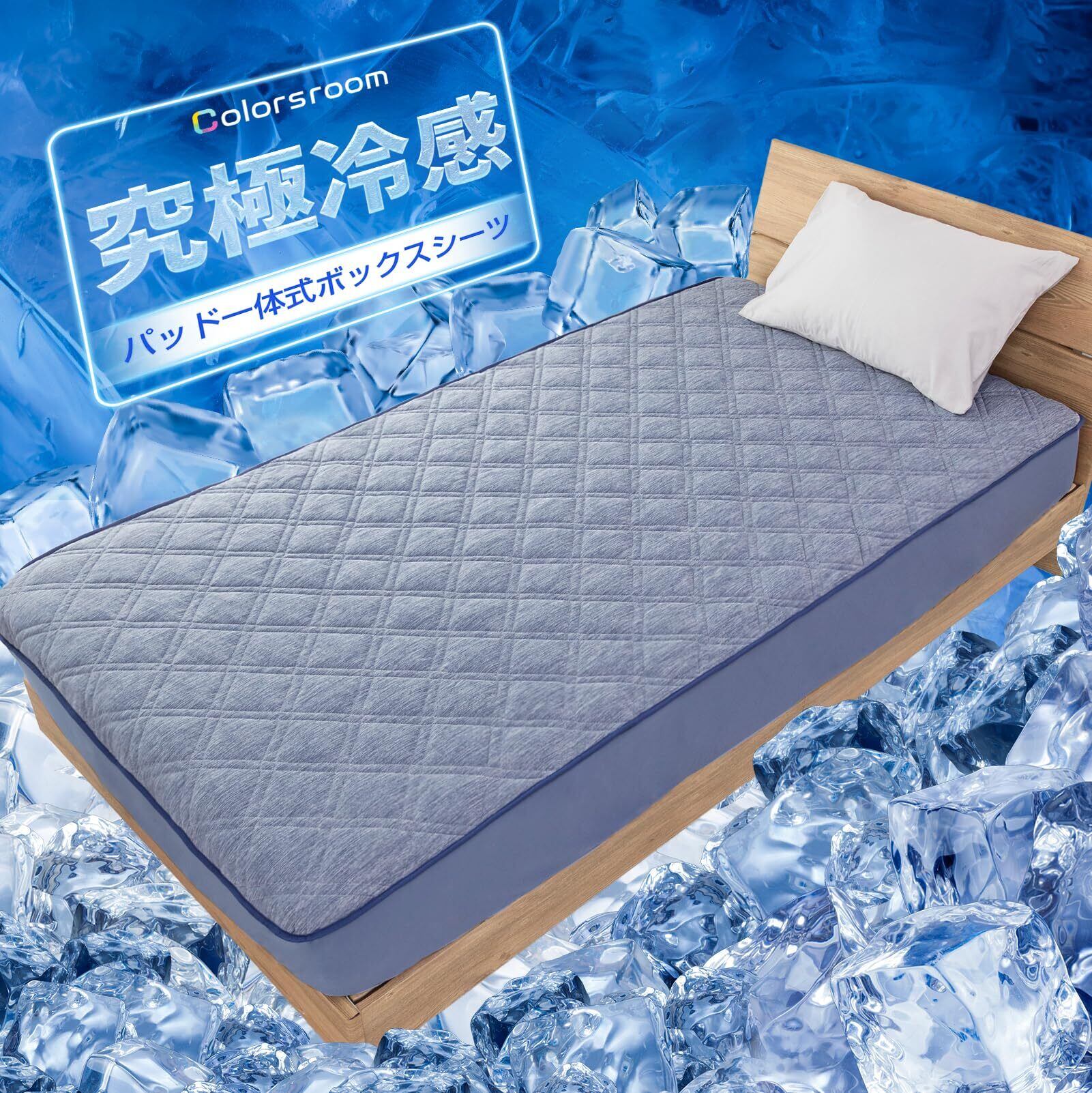 【数量限定】colorsroom パッド一体型ボックスシーツ 敷きパッド シングル 夏用 接触冷感 高級冷感素材「霜降り」 Q-max0.516 リバーシブル 抗菌・防臭・防ダニ ひんやり 冷感 シーツ ボックスシーツ 洗える 速乾 オールシーズン 100x200 ネイビー