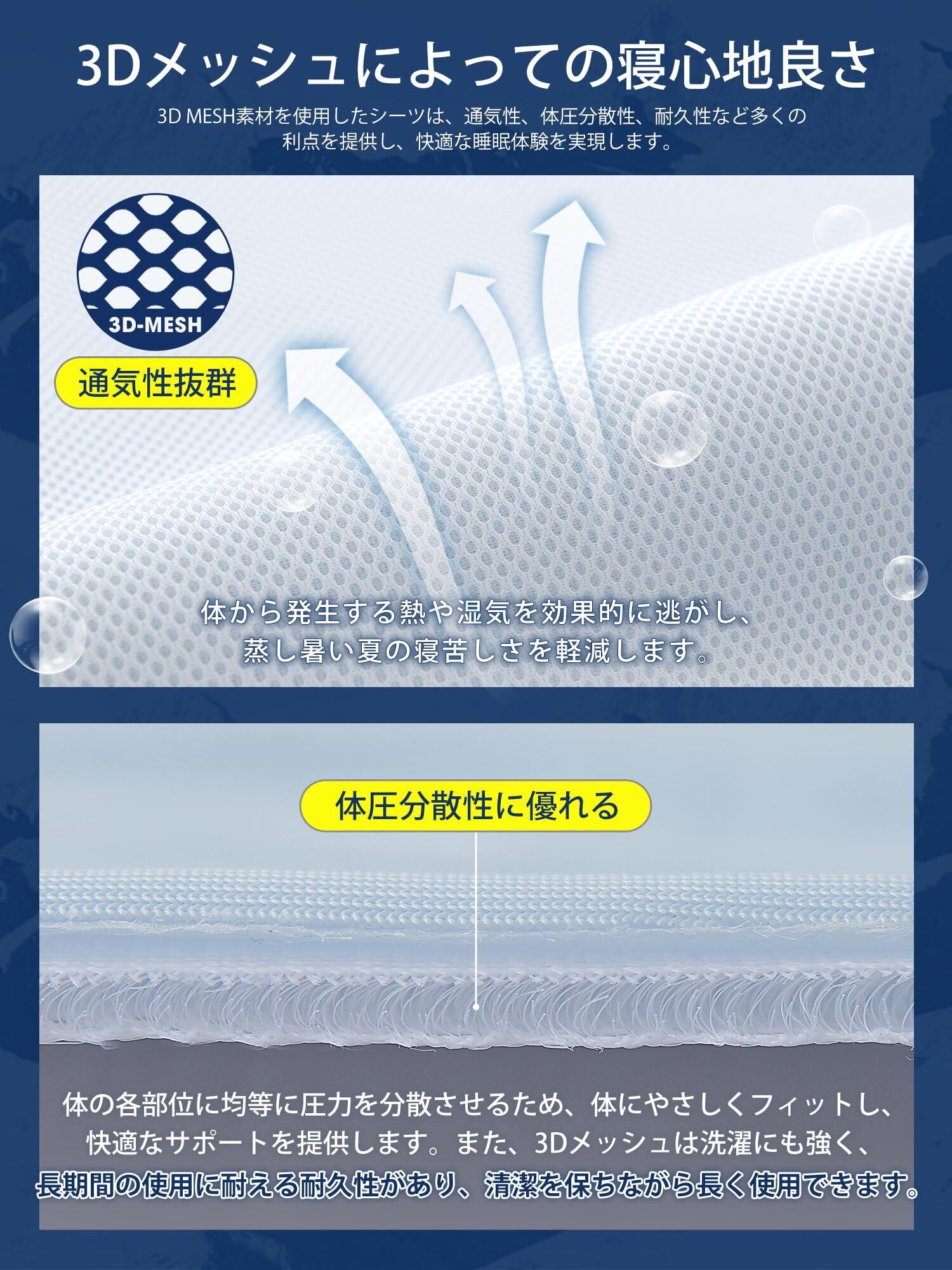 ❆【ユニークな通気性と調湿性】立体的なメッシュ構造により、呼吸するメッシュ生地として知られています。空気循環が良く、寝ている間に汗をかいても、表面は常に快適でドライな状態を維持します。更に、熱がこもりにくいから、ひんやりが続きやすいです。