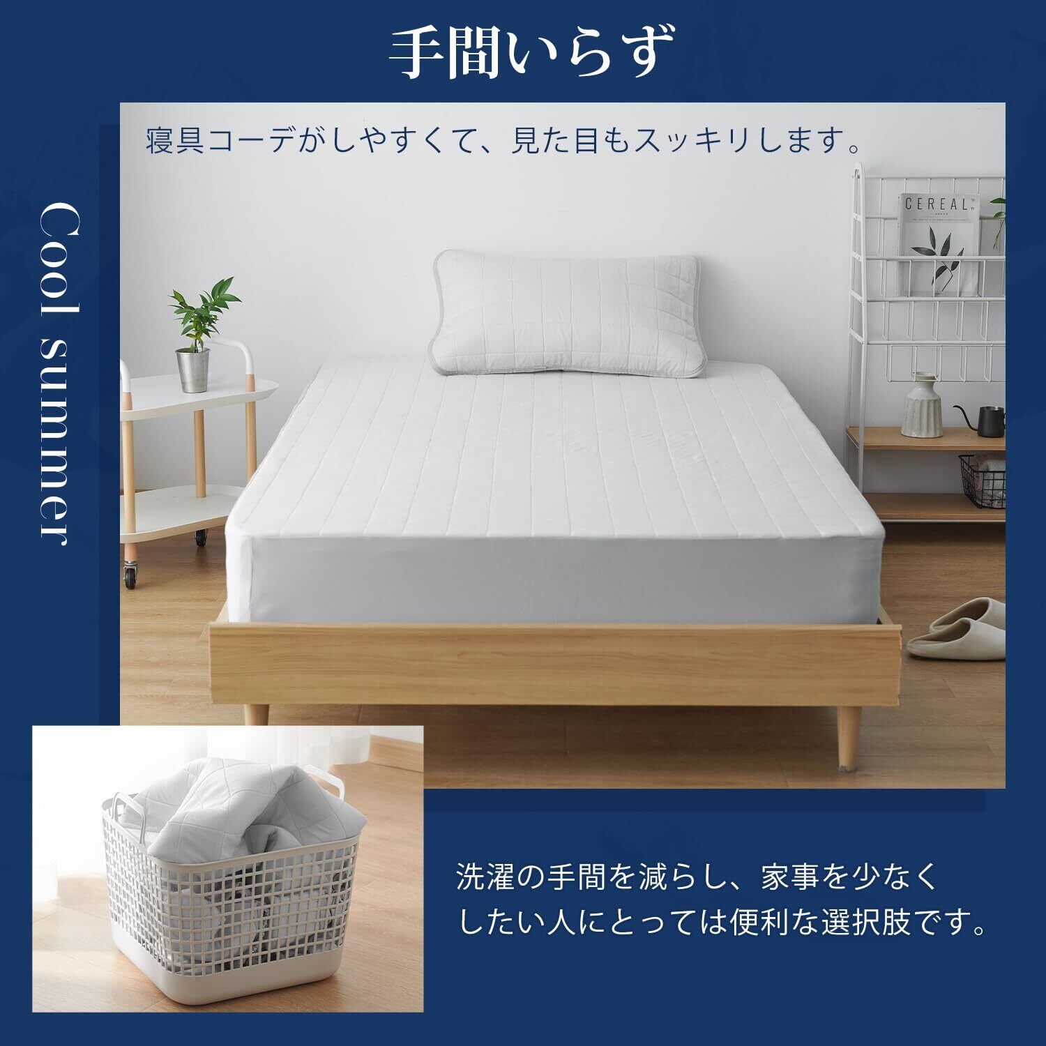 ❆【ひんやり・すべすべ】表生地は毛玉になりにくいナイロンを使用した冷感生地です。Q-max値は0.483という高数値を記録した快適な冷たさで、寝返りを打つたびに「ひんやり感」が味わえます。クーラーと併用して使うとより効果を感じることができます。