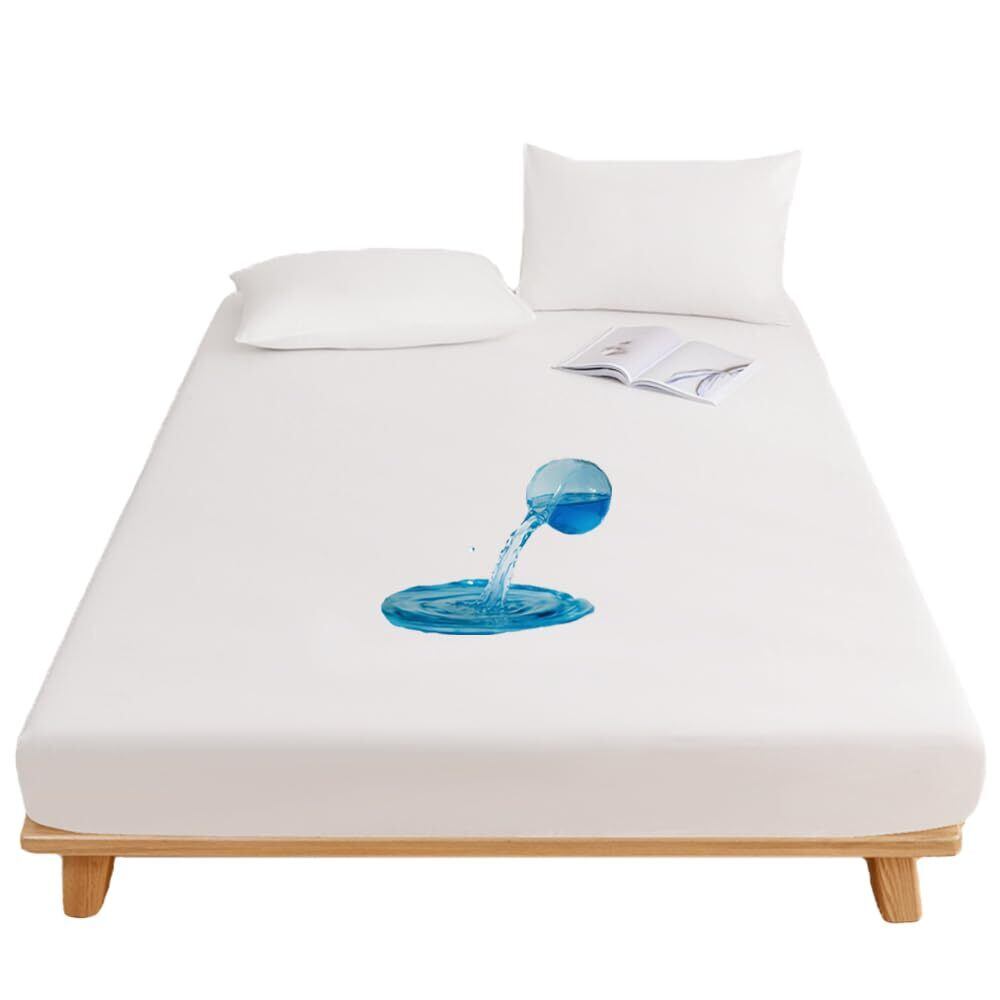 SowooHome ボックスシーツ 防水タイプ ベッドシーツ 柔らかな触感 赤ちゃん 大人用 介護用シーツ おねしょシーツ アレルギー対策 防水シーツ 防ダニ 丸洗い可能 ベッドカバー 四季適用 ダブル・140x200cm ホワイト