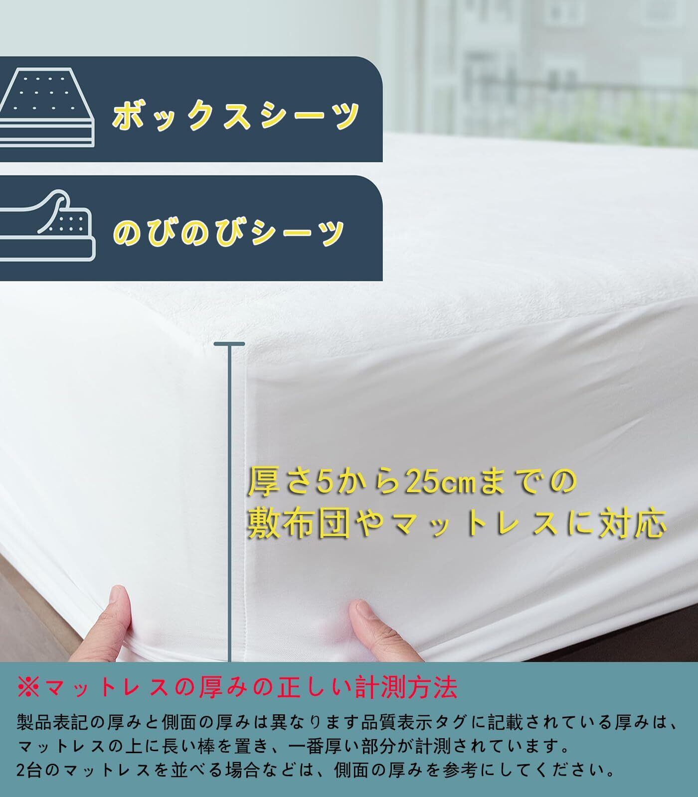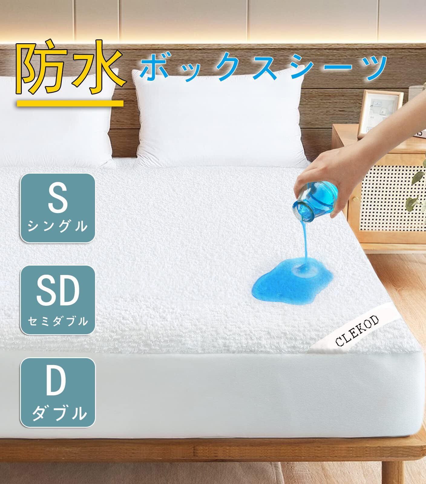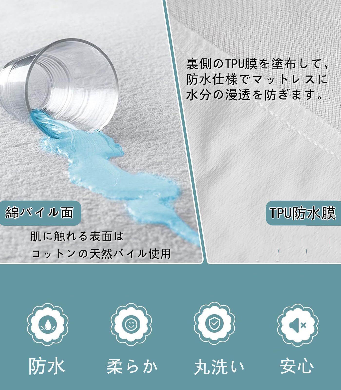 ■【防水性抜群】裏面にはTPU防水膜があり、防水性抜群のボックスシーツです!マットレスへの水分浸透を防ぎ、不快感を軽減し快適にお過ごしいただけます。女性の生理に、子供との添い寝やペットと一緒に寝る時に大活躍。子供のおねしょに、ペットのそそう用、老人の介護に、アレルギーしやすい方に、ニーズに応じて、いろんなシーンで大活躍できます!。