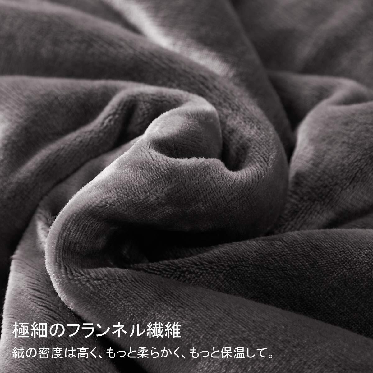 「素材」:ポリエステル100%。表面はうっとりするようななめらかなフランネル素材です。密度の高い、毛束の小さい毛足が空気を取り込むので、そこに「空気の層」がうまれます。空気の層が外の冷えから守り、また、体から出る熱を包み込むので暖かさを逃しません。寝ているときも、ぬくもりに包まれて、ずっとあたたかい。